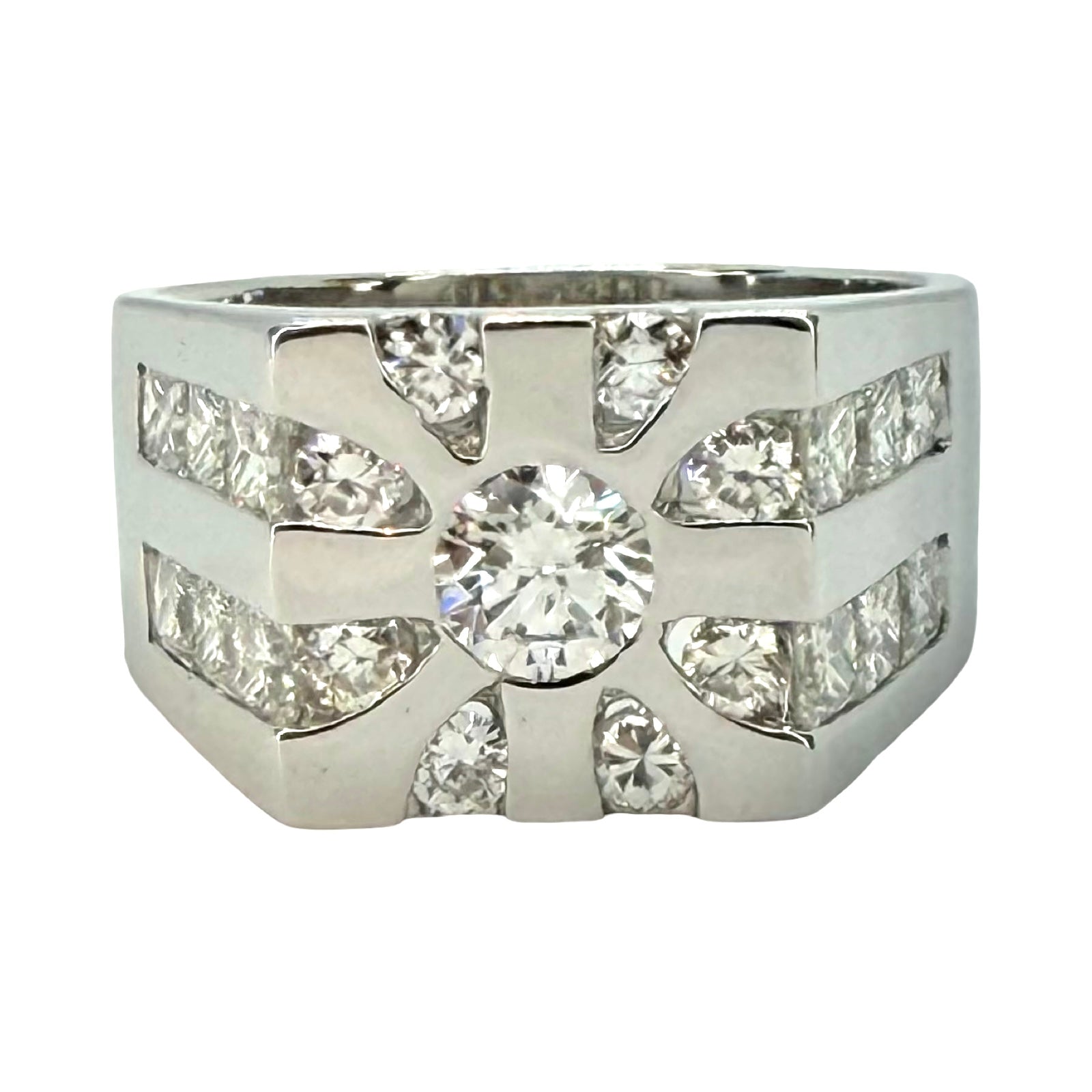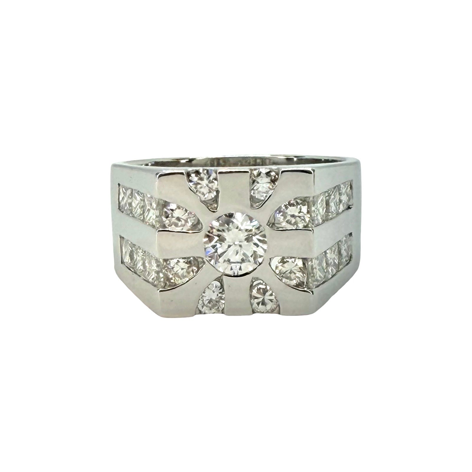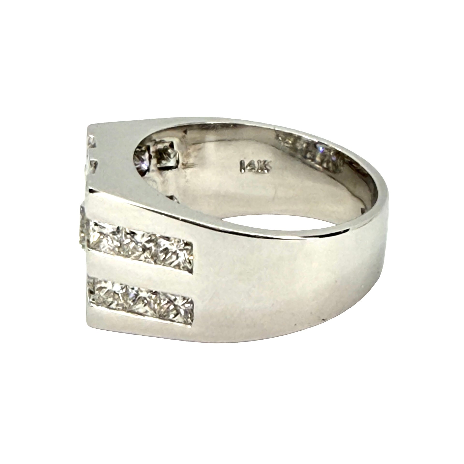 14K White Gold Mens Diamond Ring 3.20 Carats TW G, VS2-SI1