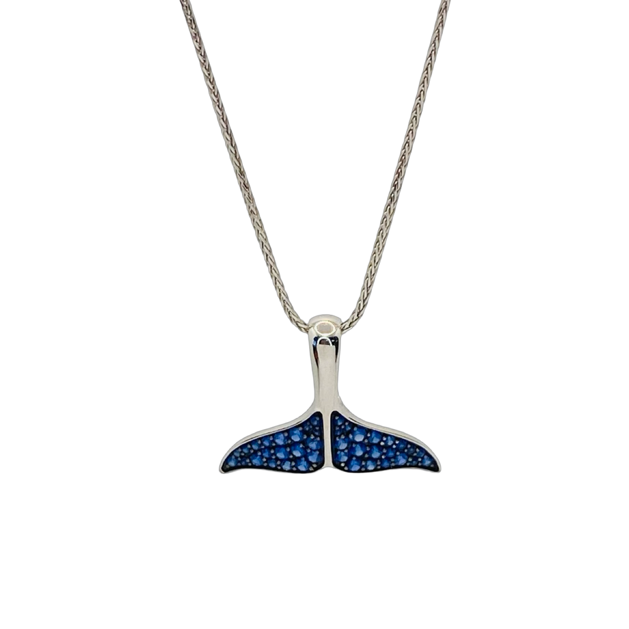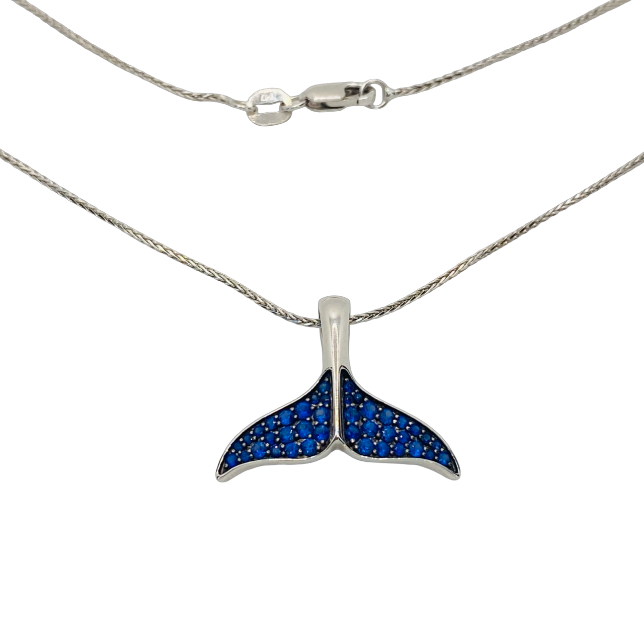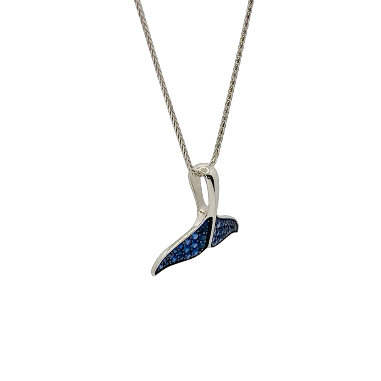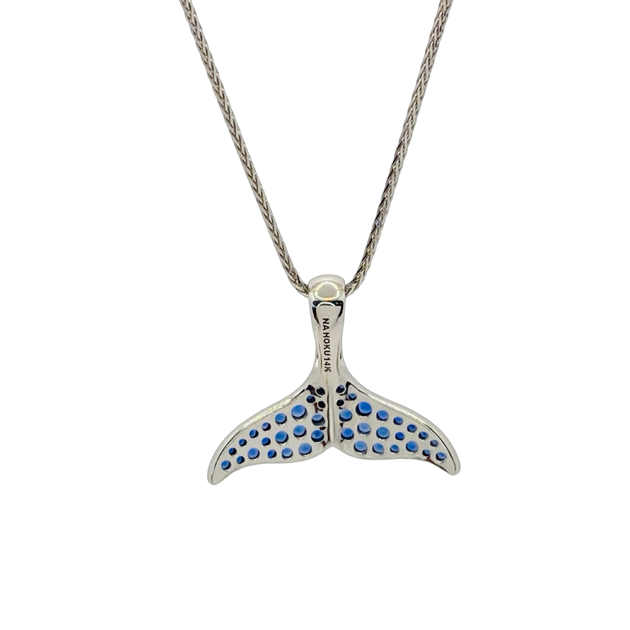 14K White Gold Na Hoku Whale Tail Pendant with Blue Sapphires 40153