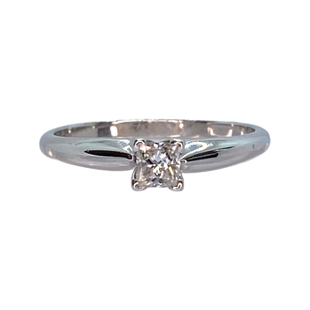 14K White Gold Solitaire Princess Cut Diamond Ring
