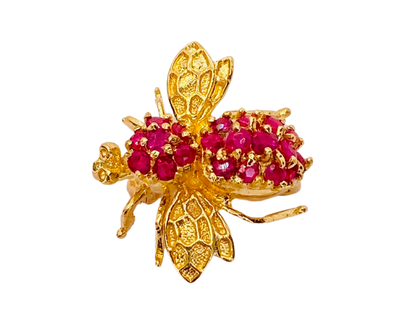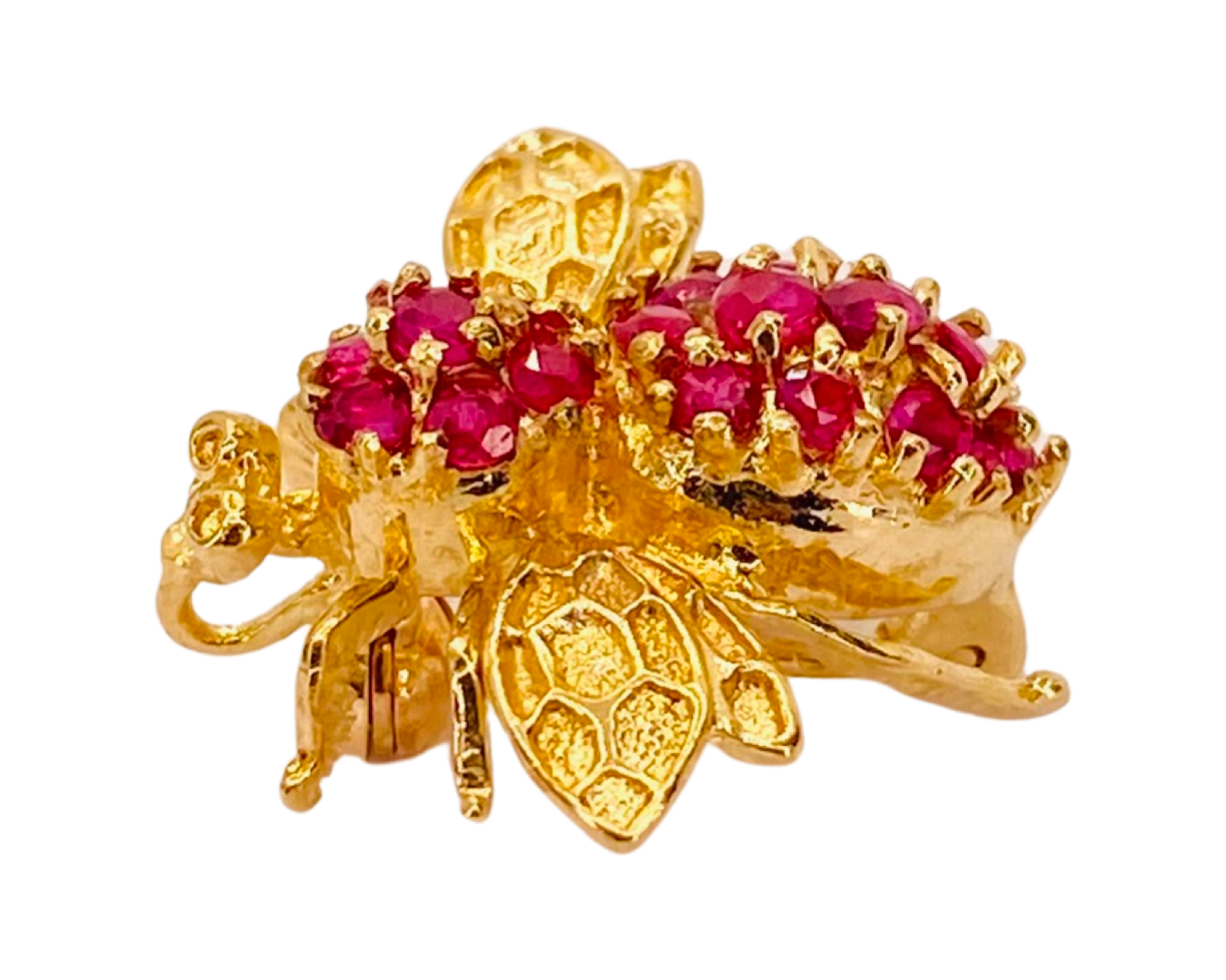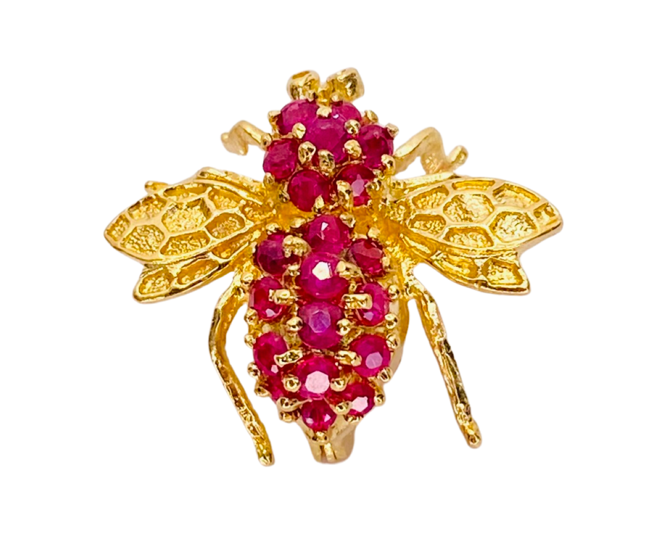 14K Yellow Gold Bee Ruby Brooch/ Pendant