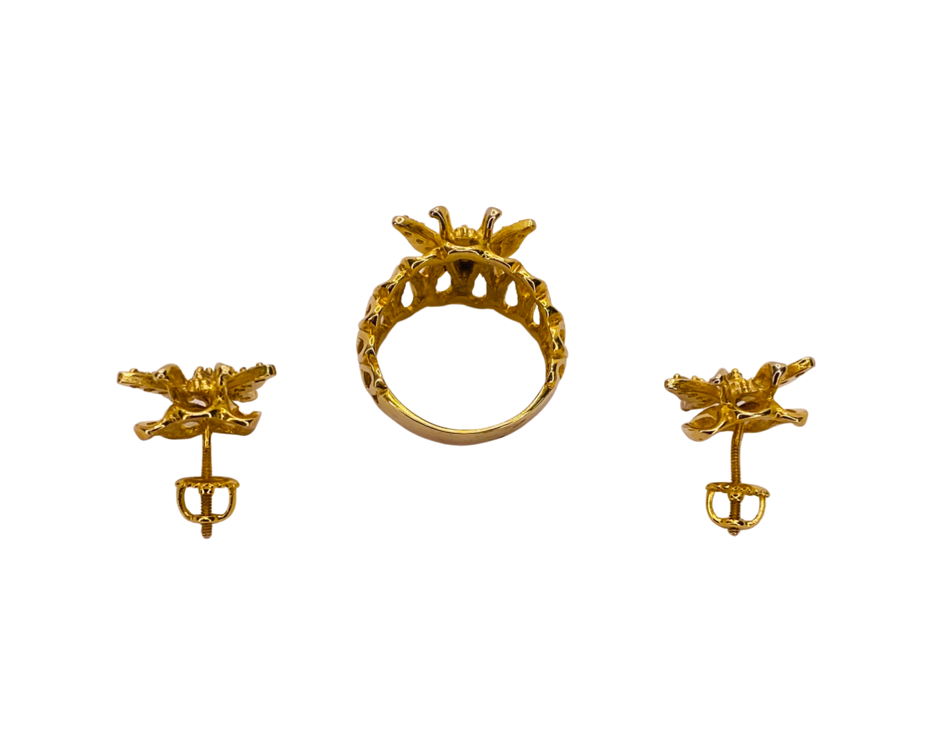 14K Yellow Gold Butterfly Ring & Earrings Set