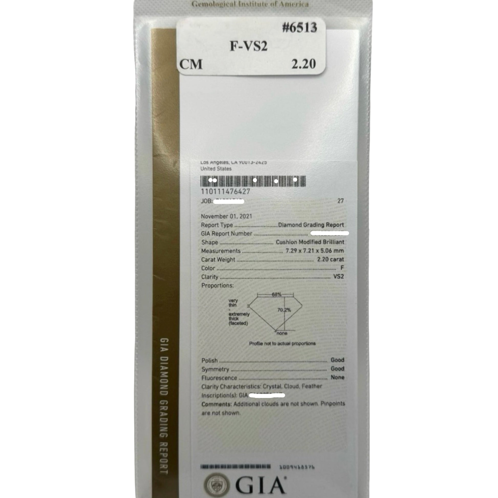 14K Yellow Gold Cushion Diamond Ring 2.20 Carats F, VS2