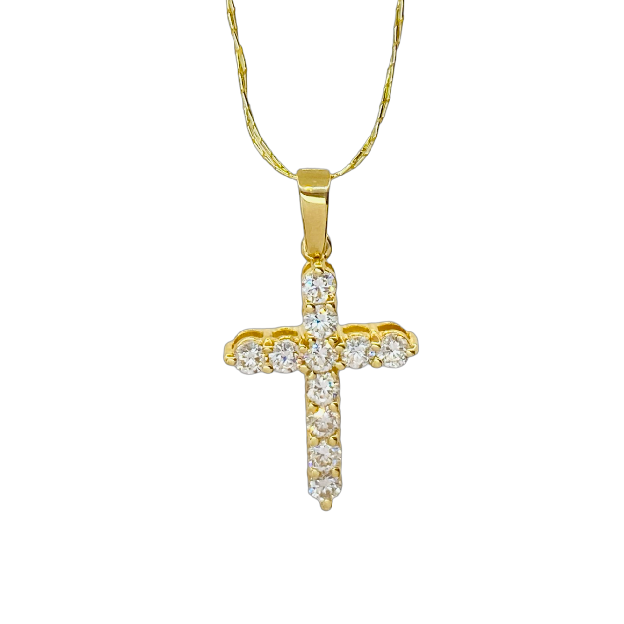 14K Yellow Gold Diamond Cross Pendant 1.00 Carat F,VS