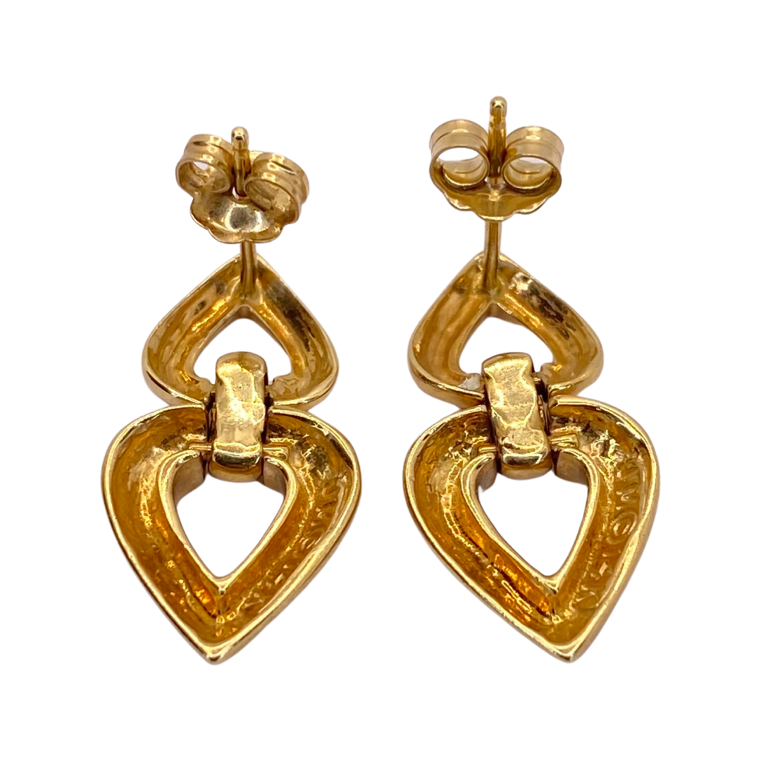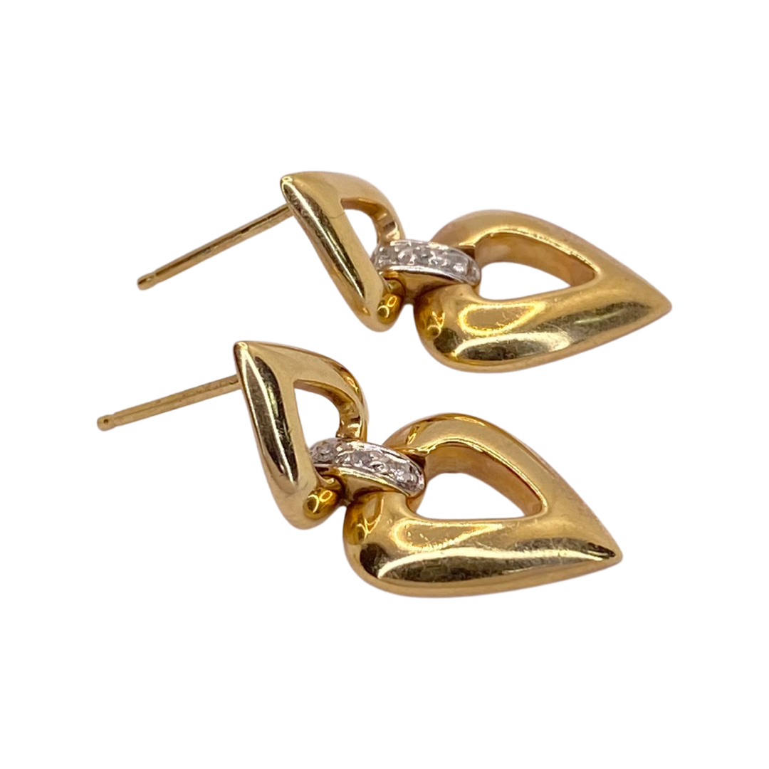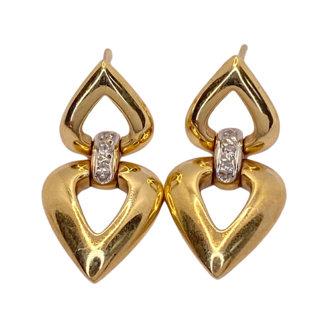 14K Yellow Gold Duo Heart Earrings with Diamonds