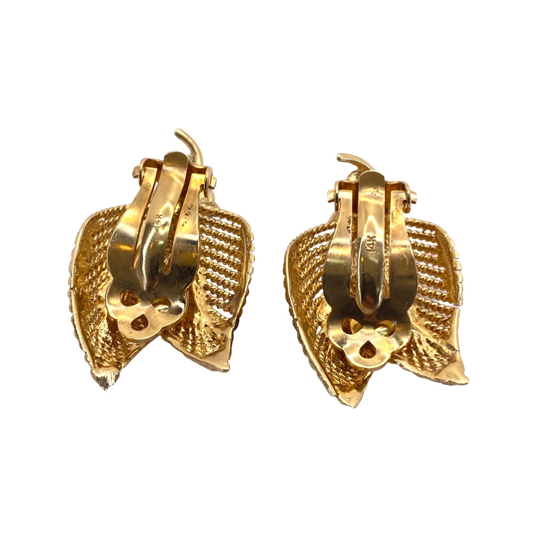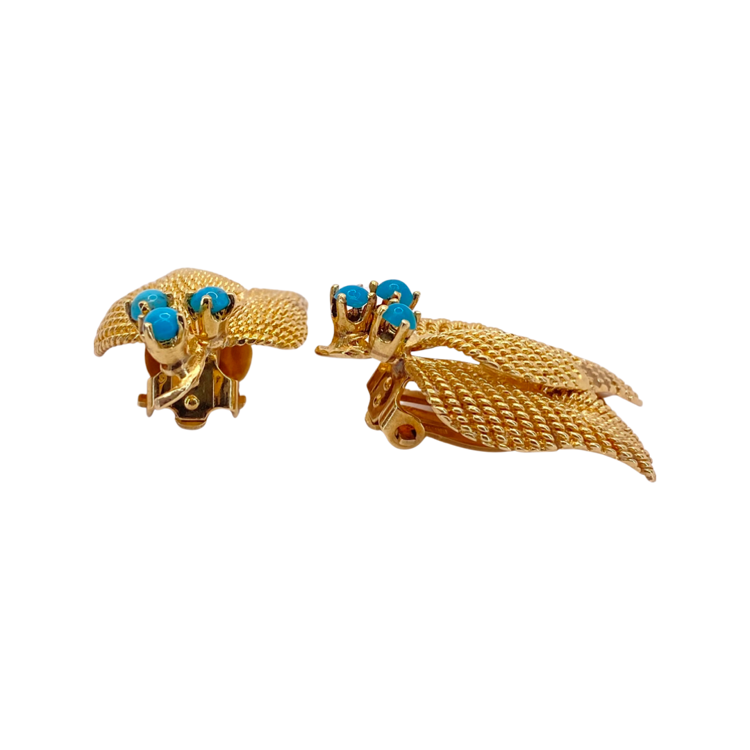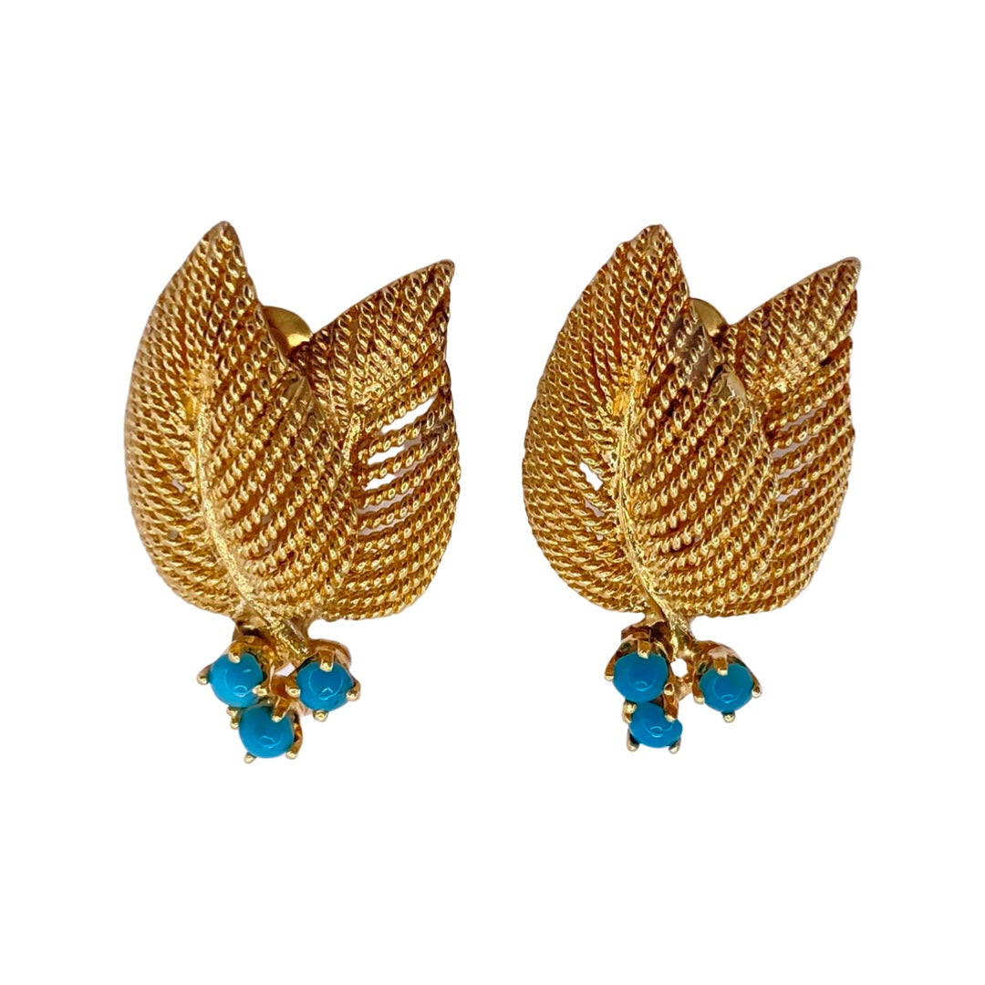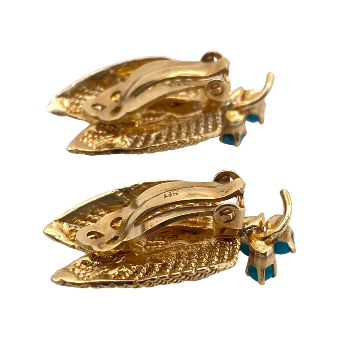 14K Yellow Gold Leaf Turquoise Clip-On Earrings