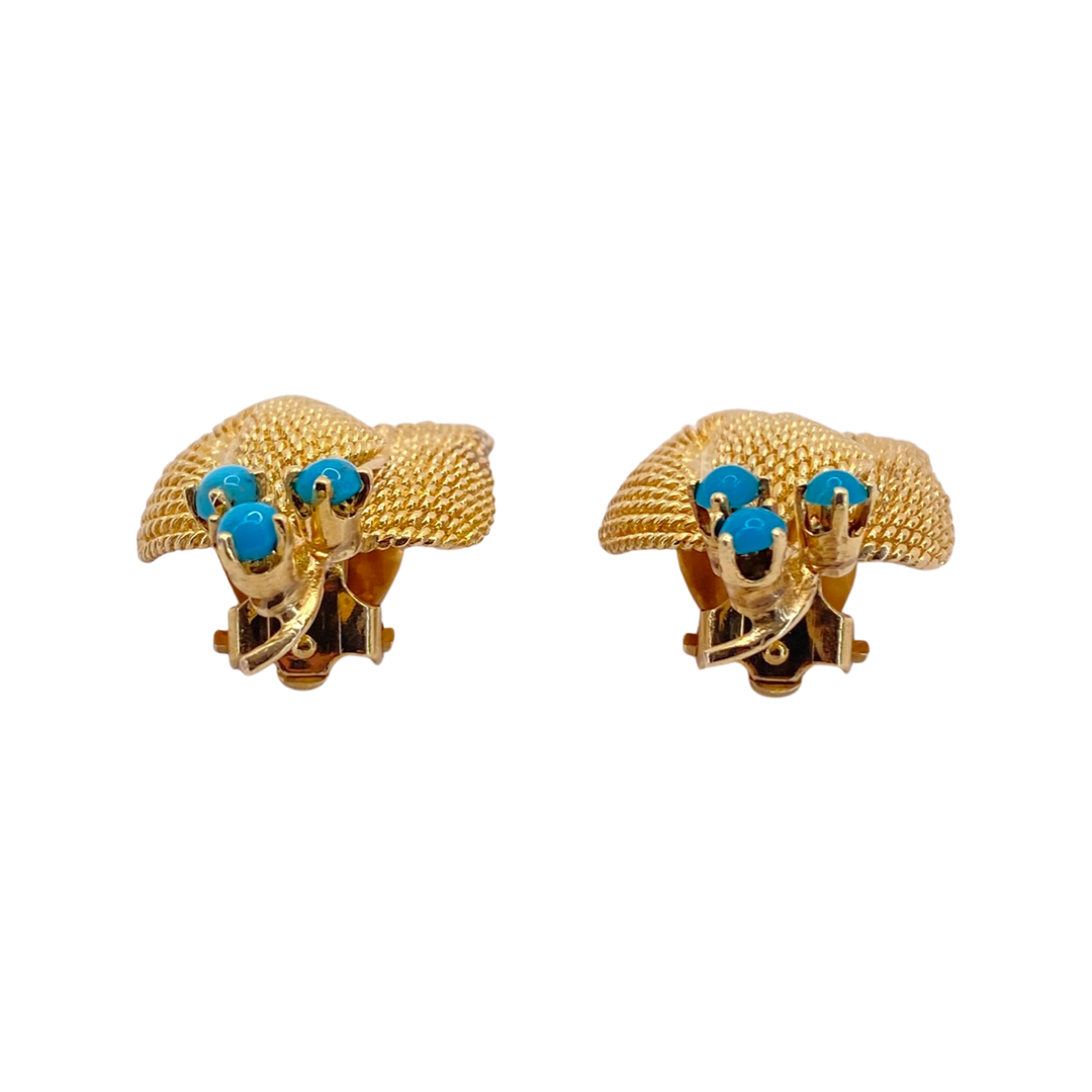 14K Yellow Gold & Turquoise Clip-on Earrings