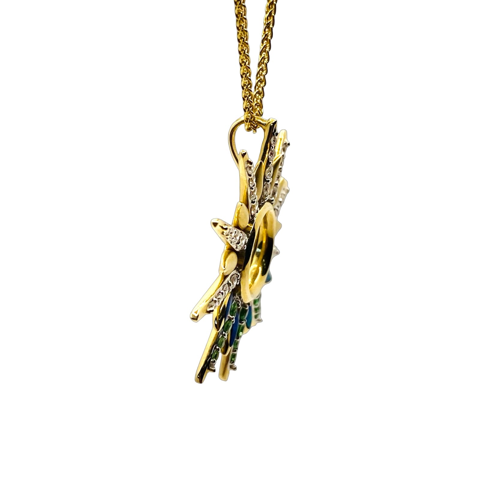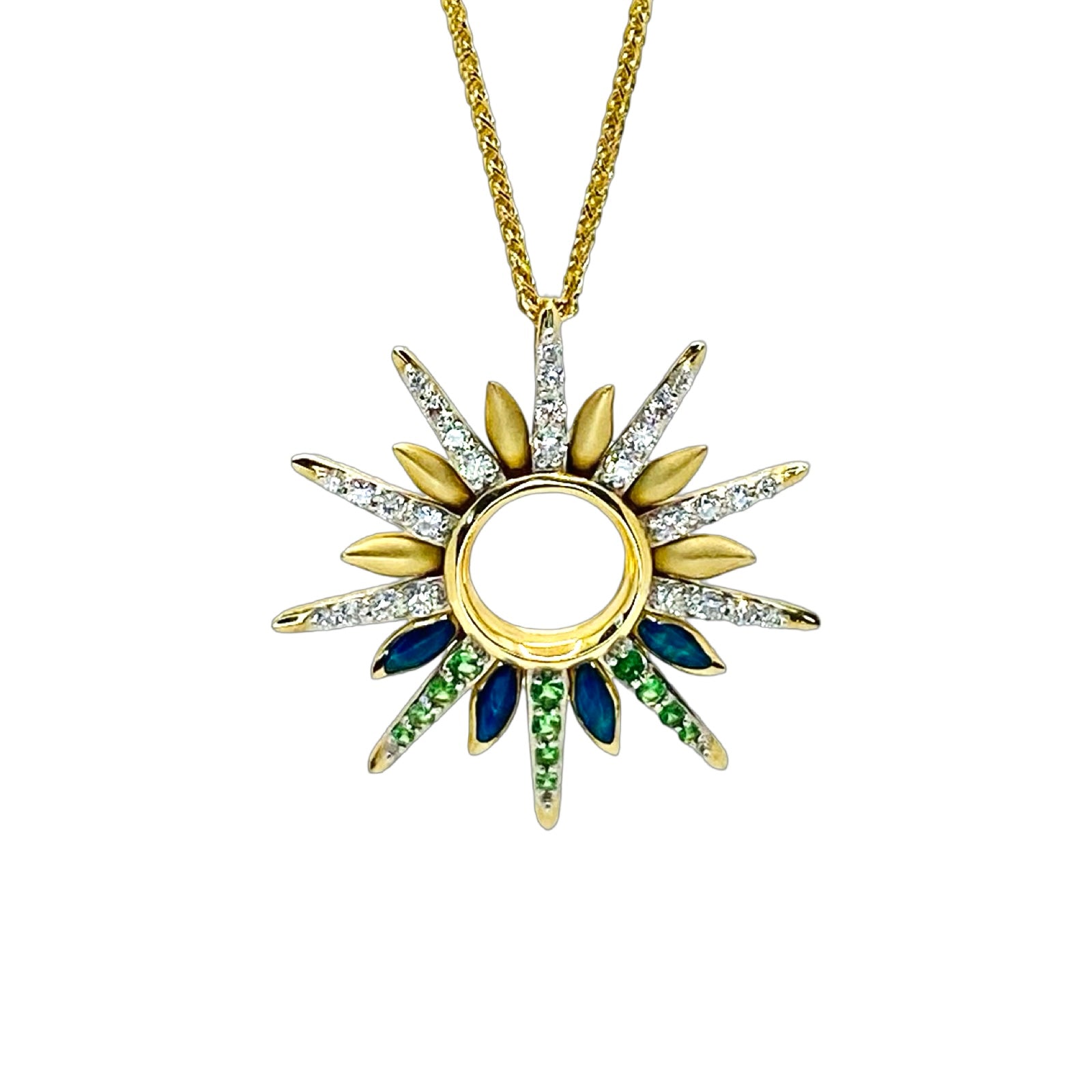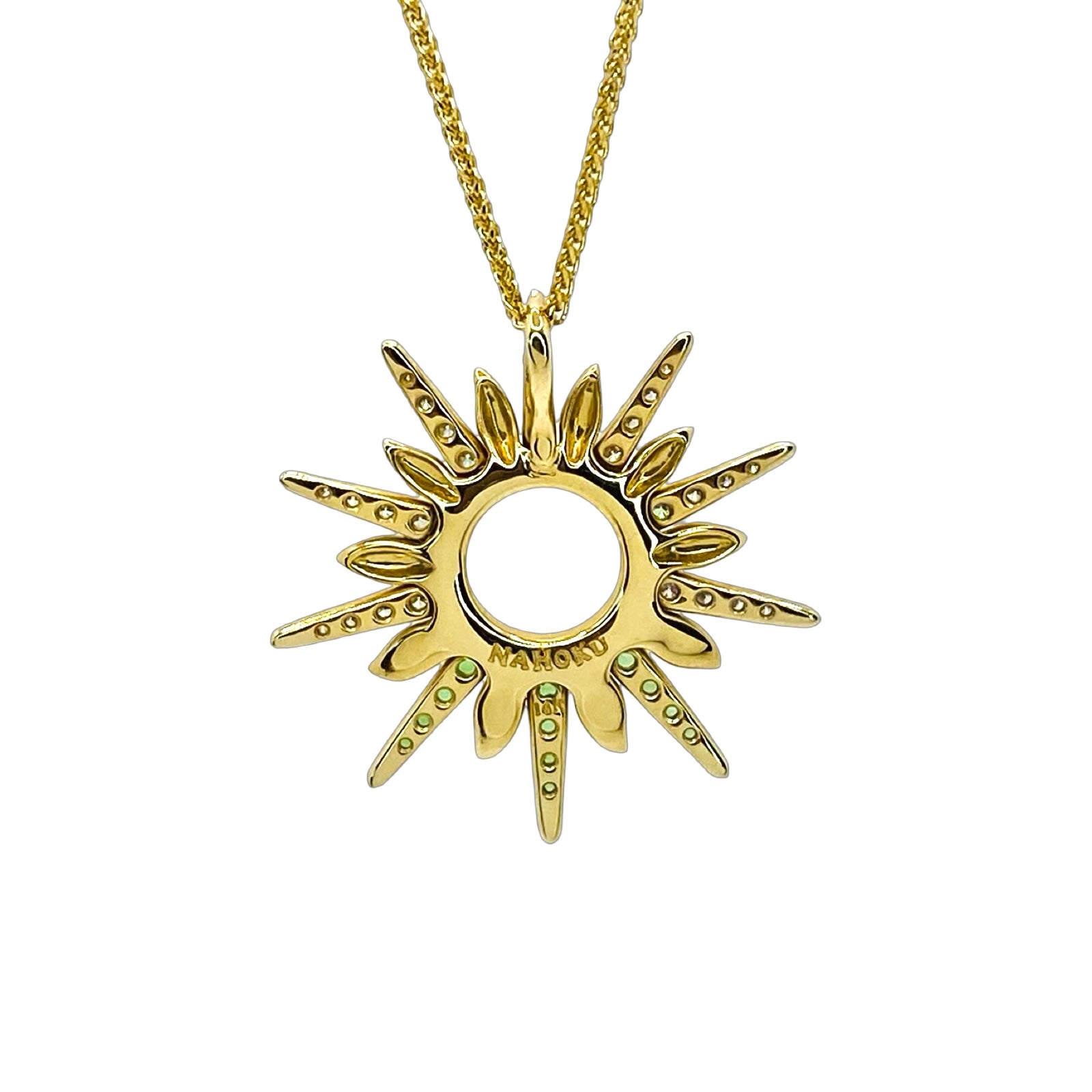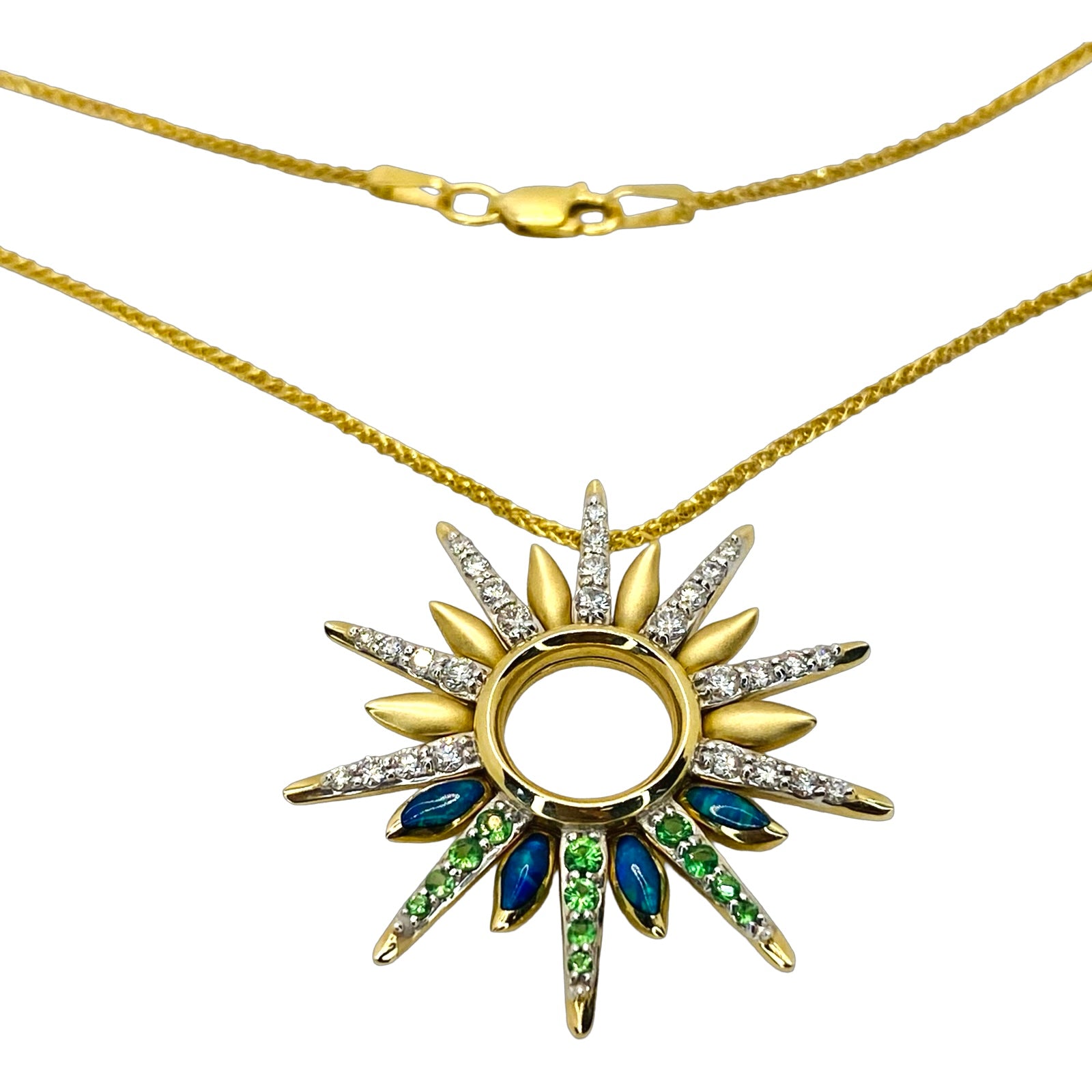 14K Yellow Gold Na Hoku Large Green Flash Sunset Pendant with Opal Inlay, Tsavorites and Diamonds 44747