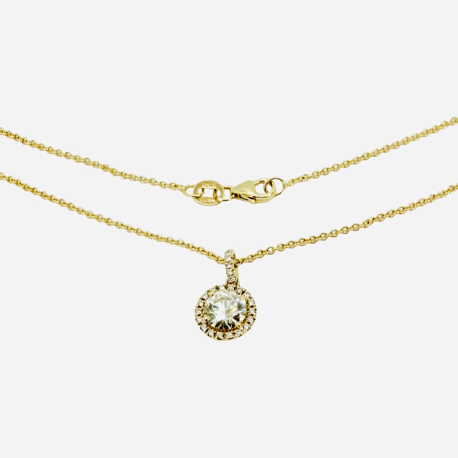 14K Yellow Gold Round Diamond Halo Pendant 0.95 Carat TW