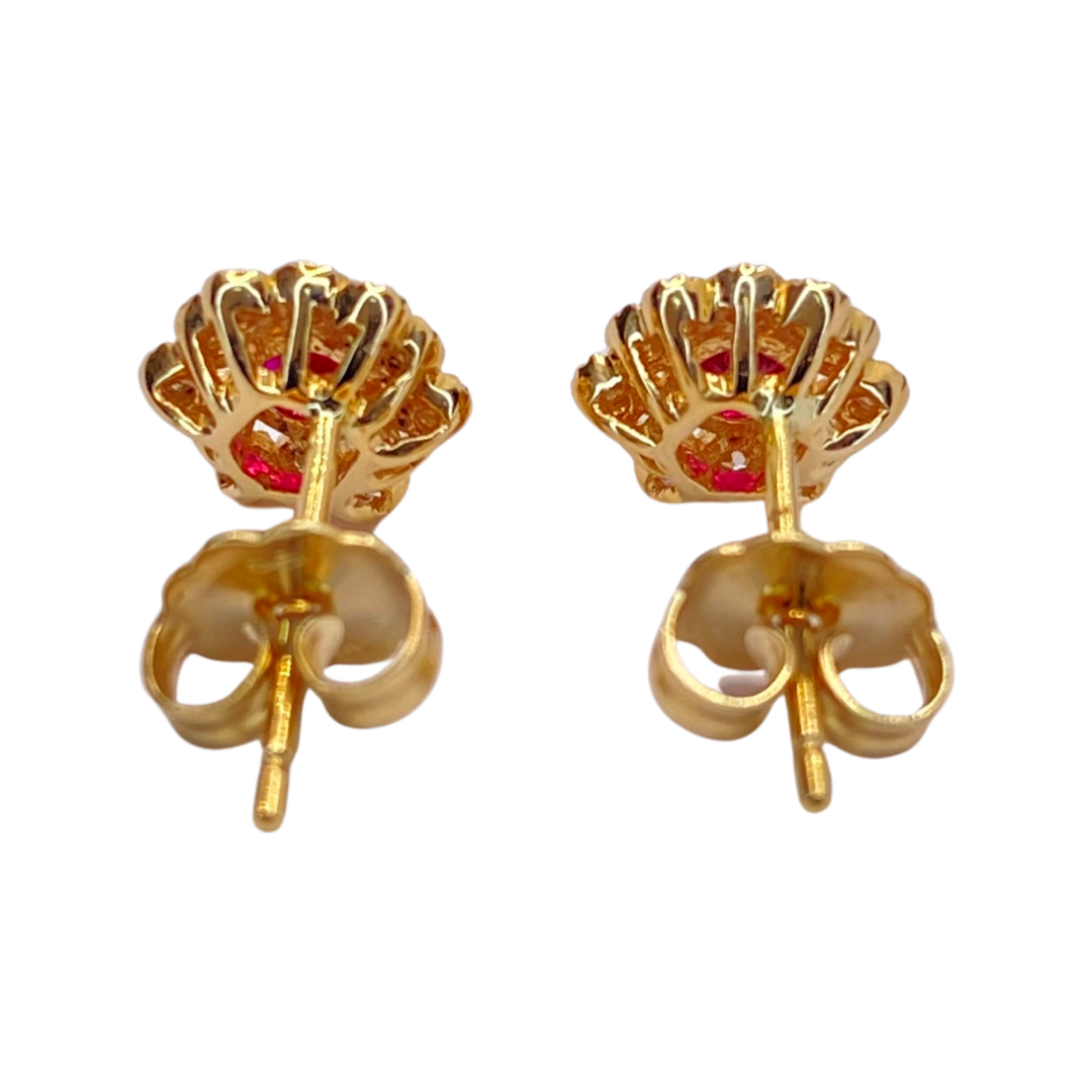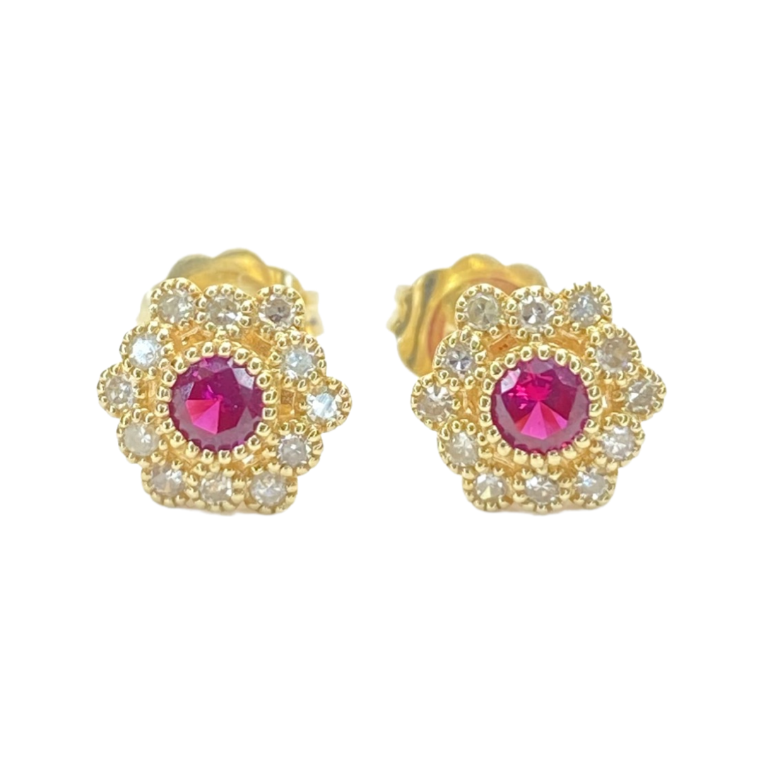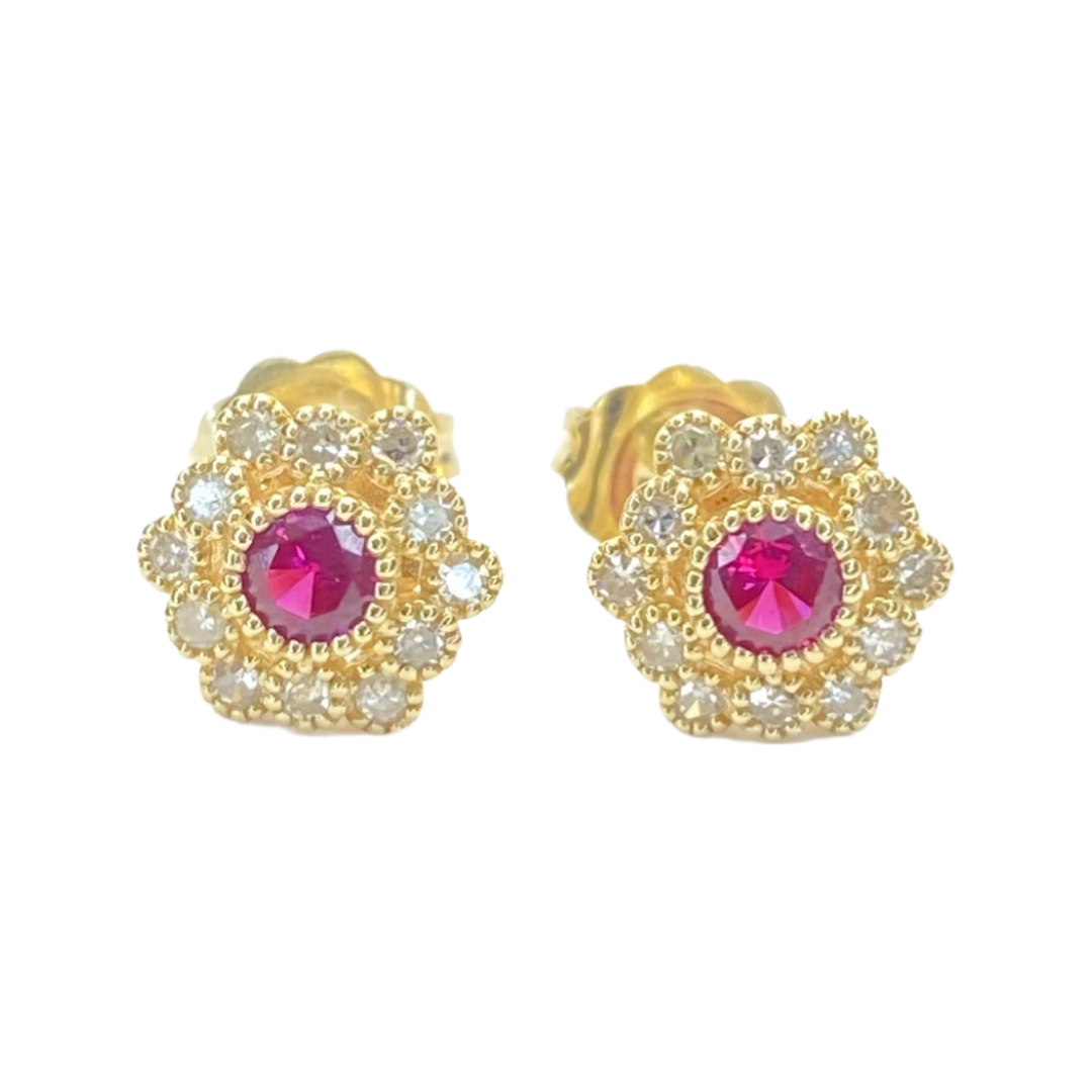 14K Yellow Gold Ruby & Diamond Stud Earrings