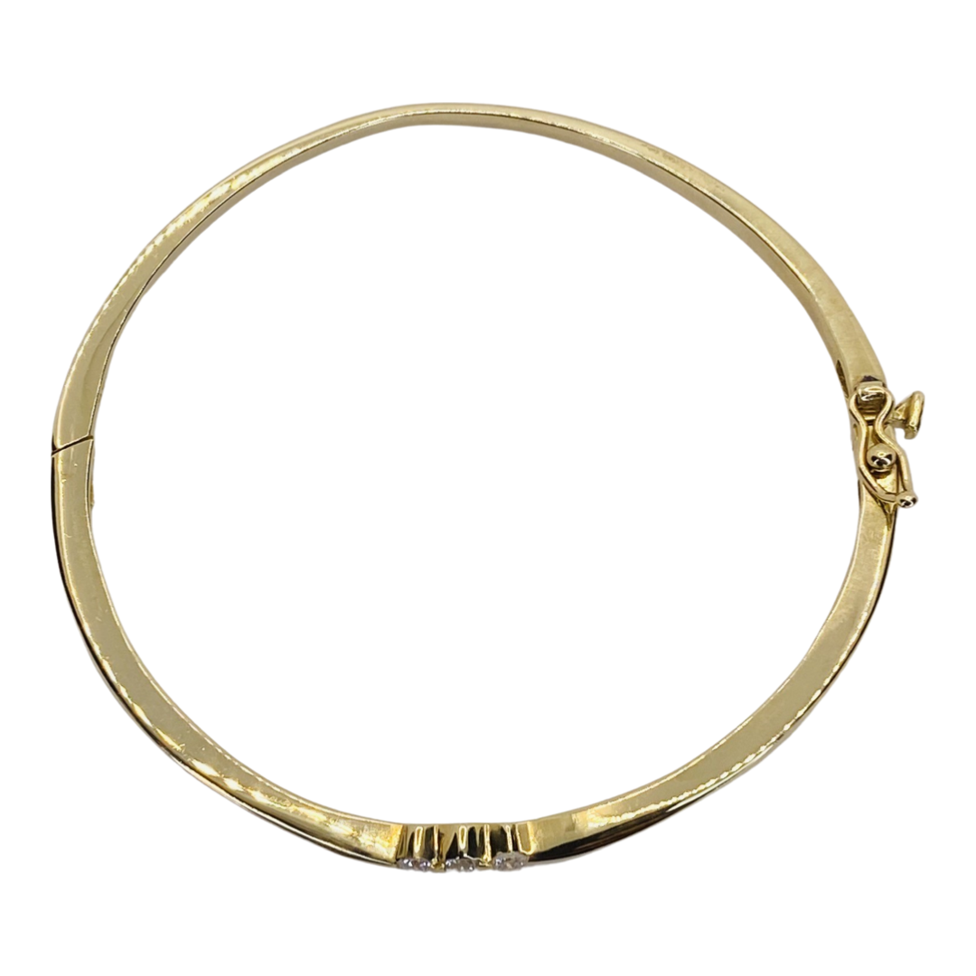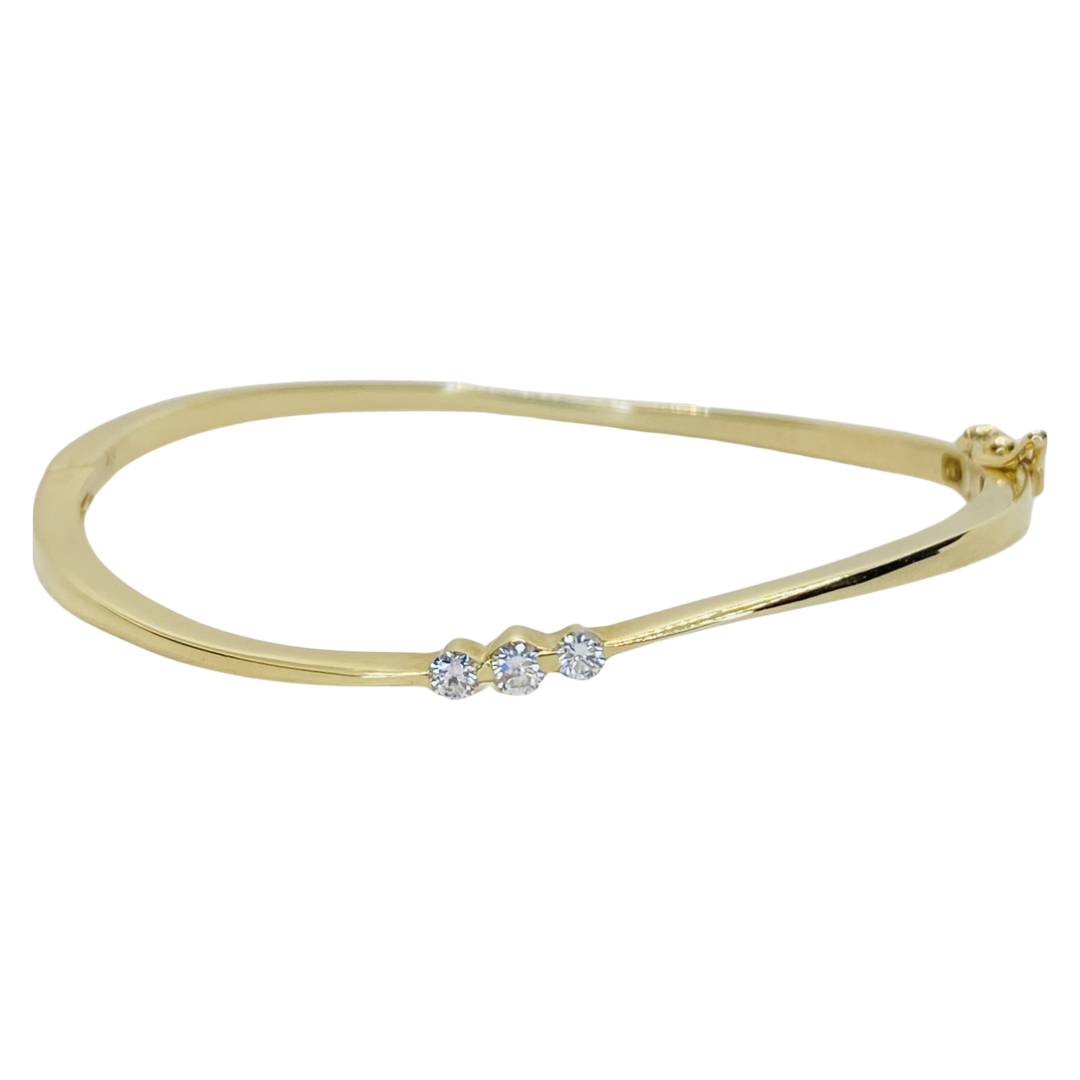 14K Yellow Gold Three-Stone Diamond Elliptical Bangle