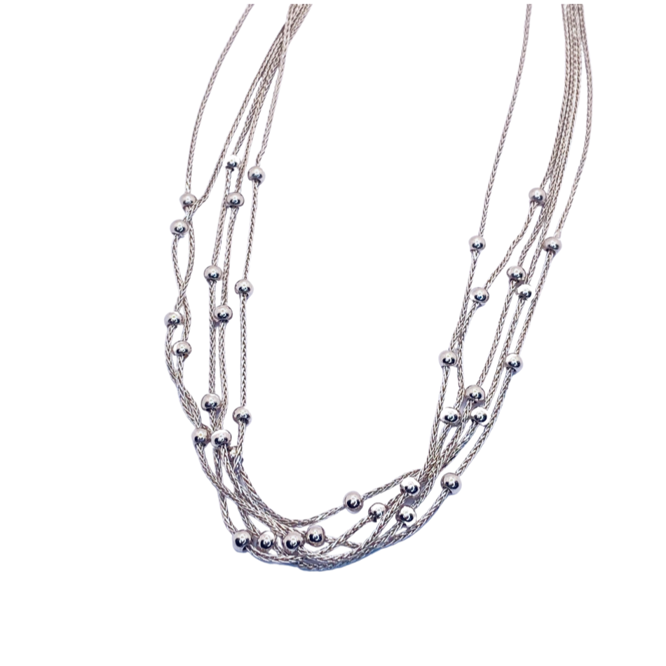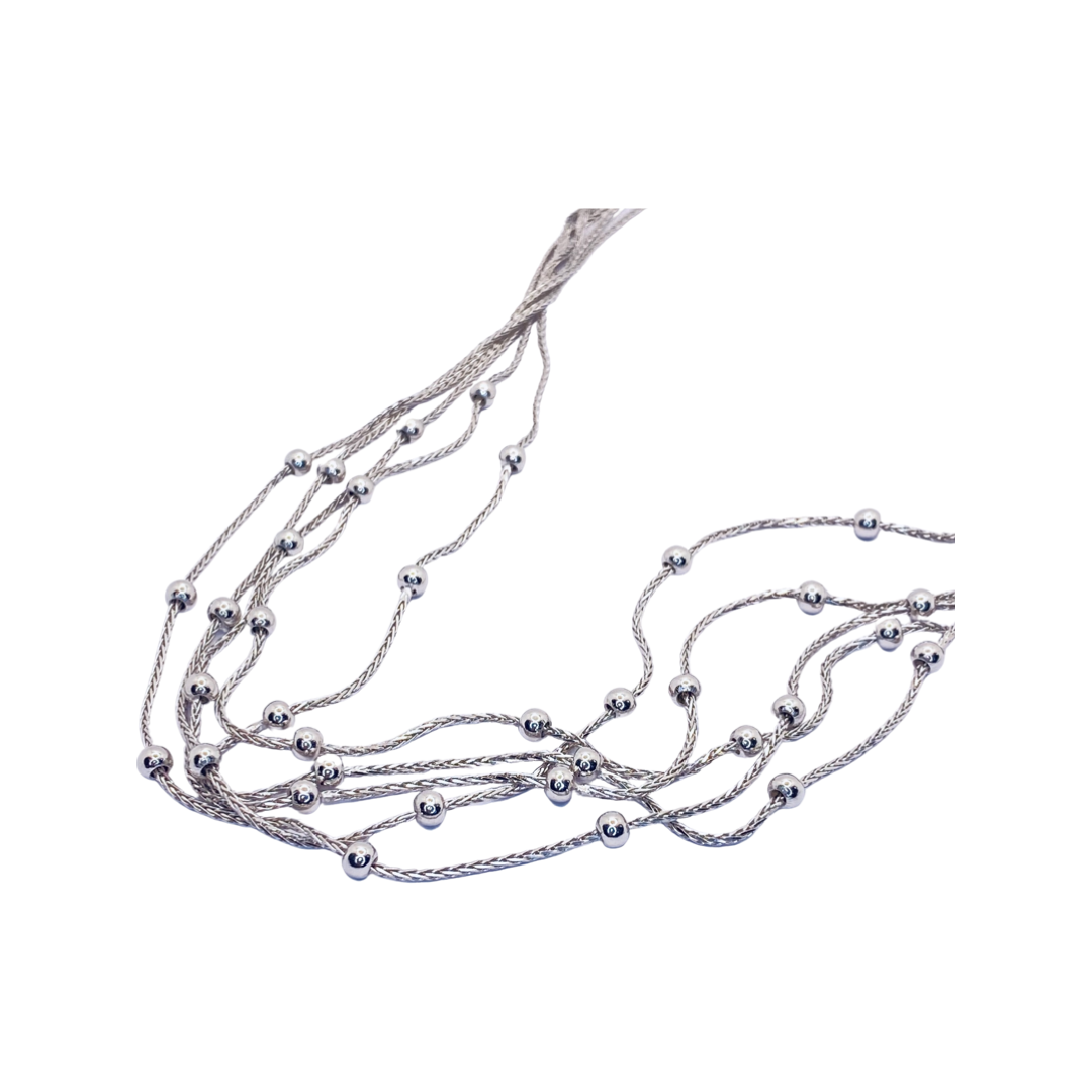 18K White Gold 5 Strand Ball Beads Necklace