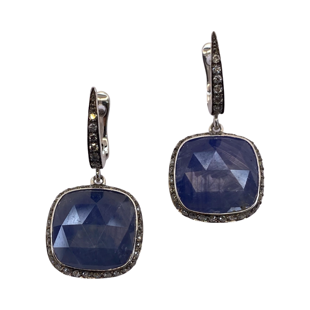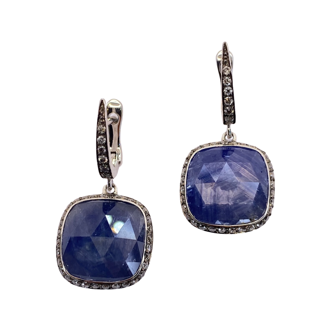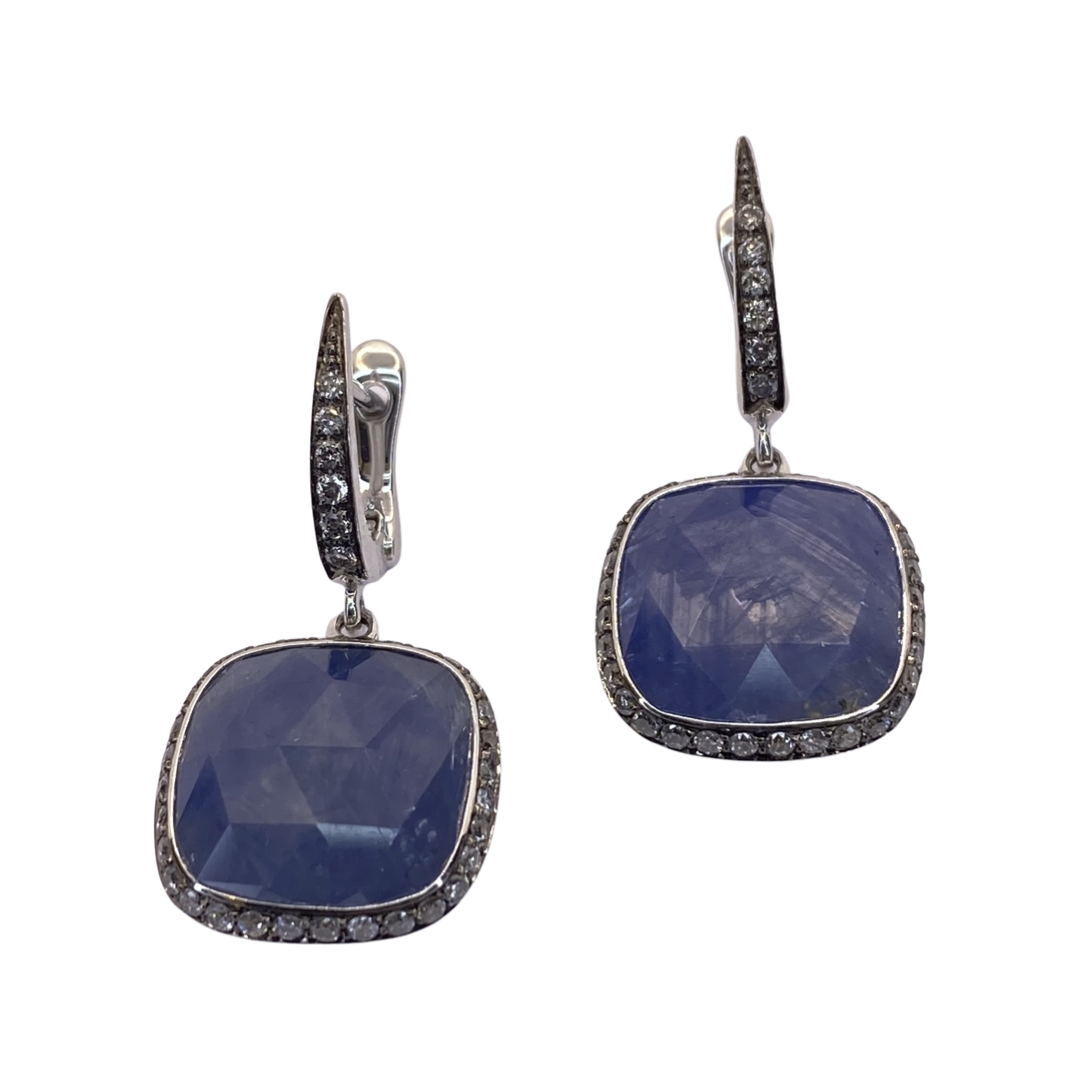 18K White Gold Blue Sapphire & Diamond Dangle Earrings