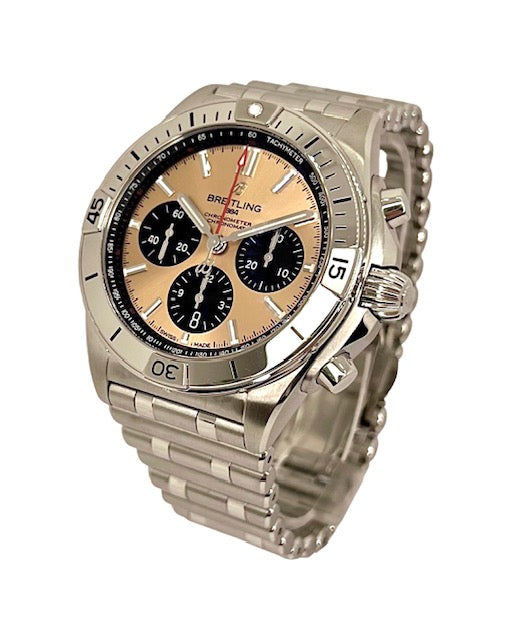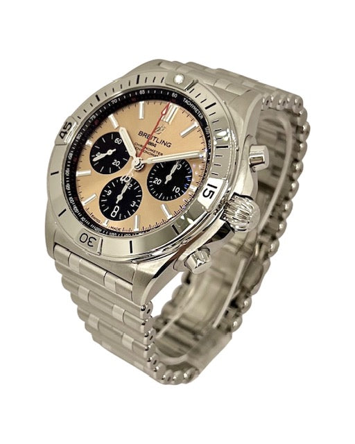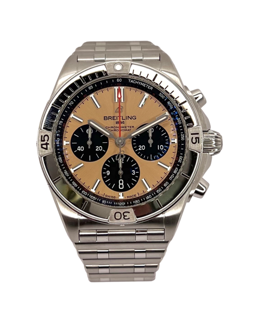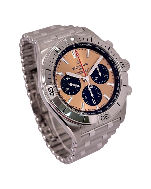 Dial: Copper with silver stick indices, black chronograph and small seconds dial, date aperture at 6 o'clock
