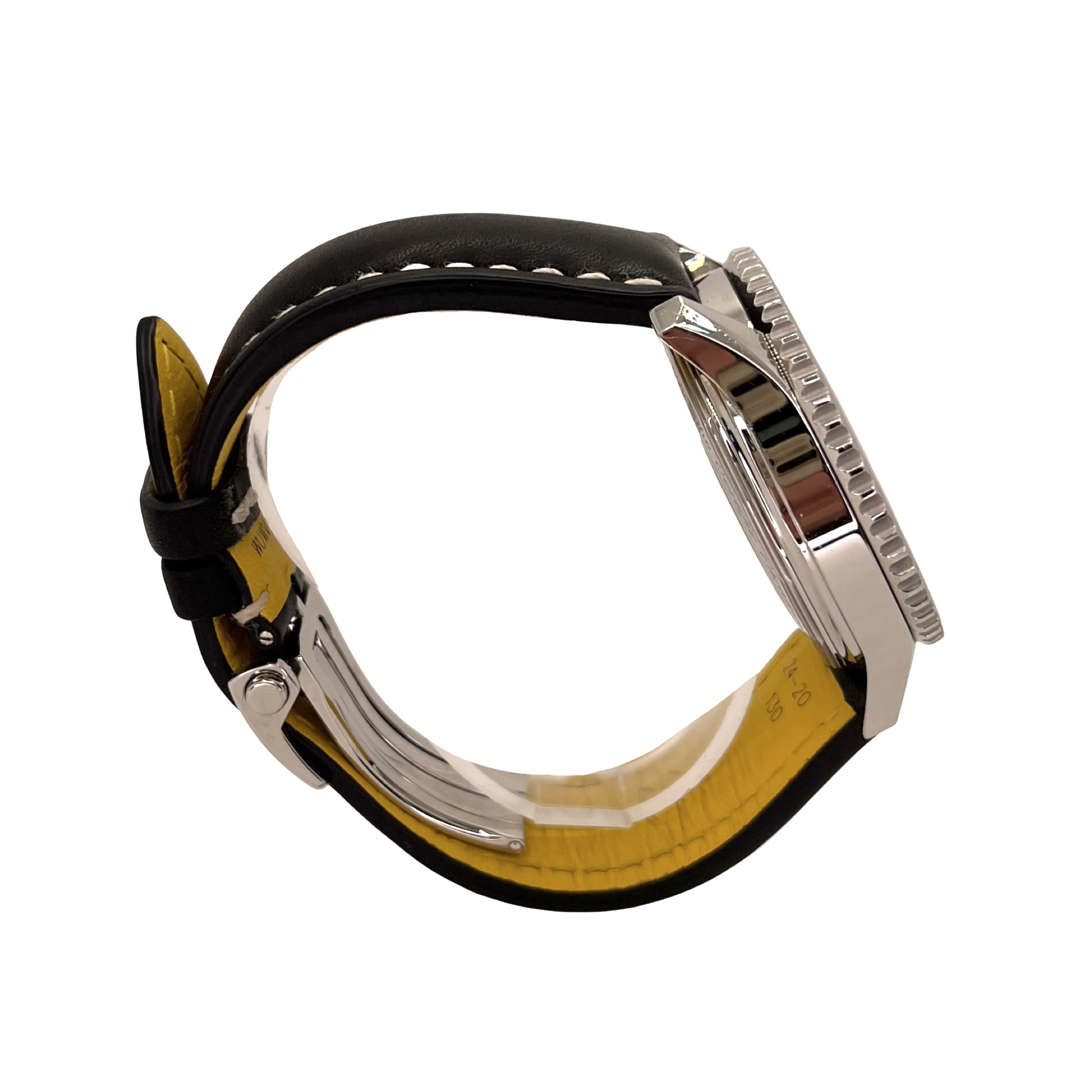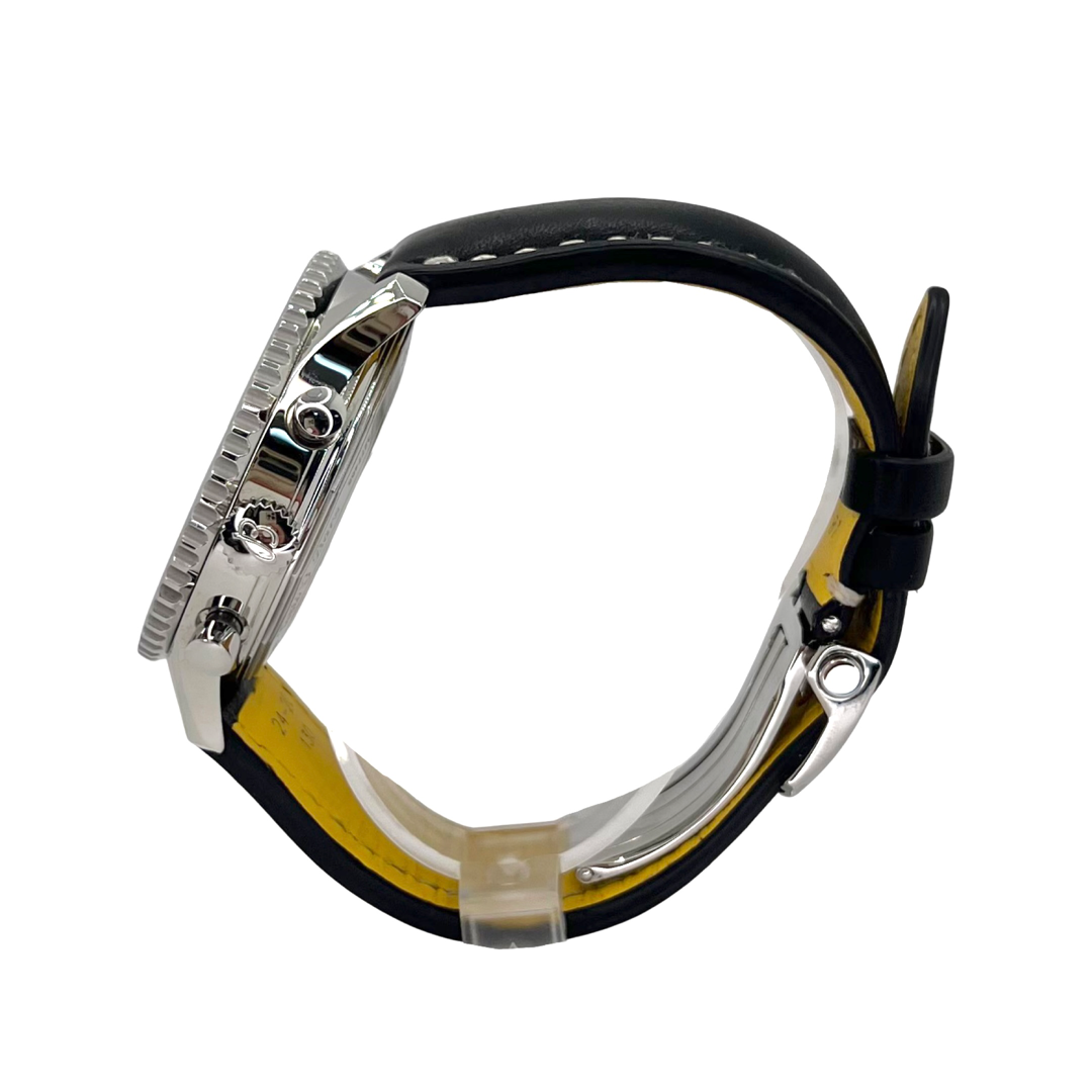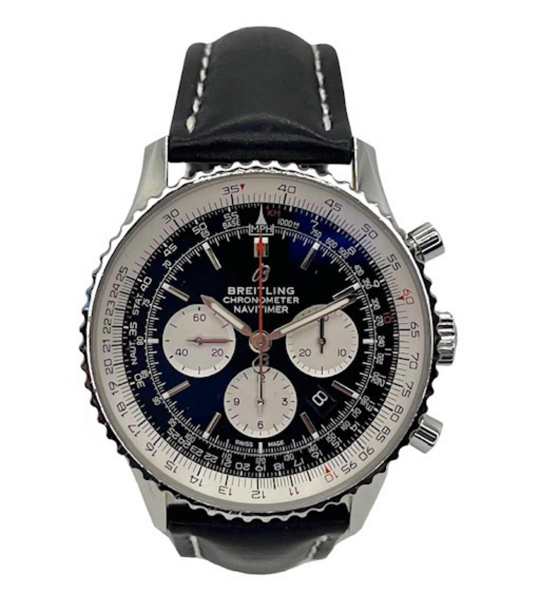 The classic Navitimer features a generous 46 mm diameter accentuating its presence on the wrist and enhancing the originality of its design, while optimizing the readability of the dial and the circular aviation slide rule. A transparent caseback reveals the chronometer-certified, high-performance self-winding chronograph caliber, Manufacture Breitling Caliber 01. In addition to the steel and steel & gold versions, this model is available in red gold. A larger-than-life take on the legend.
