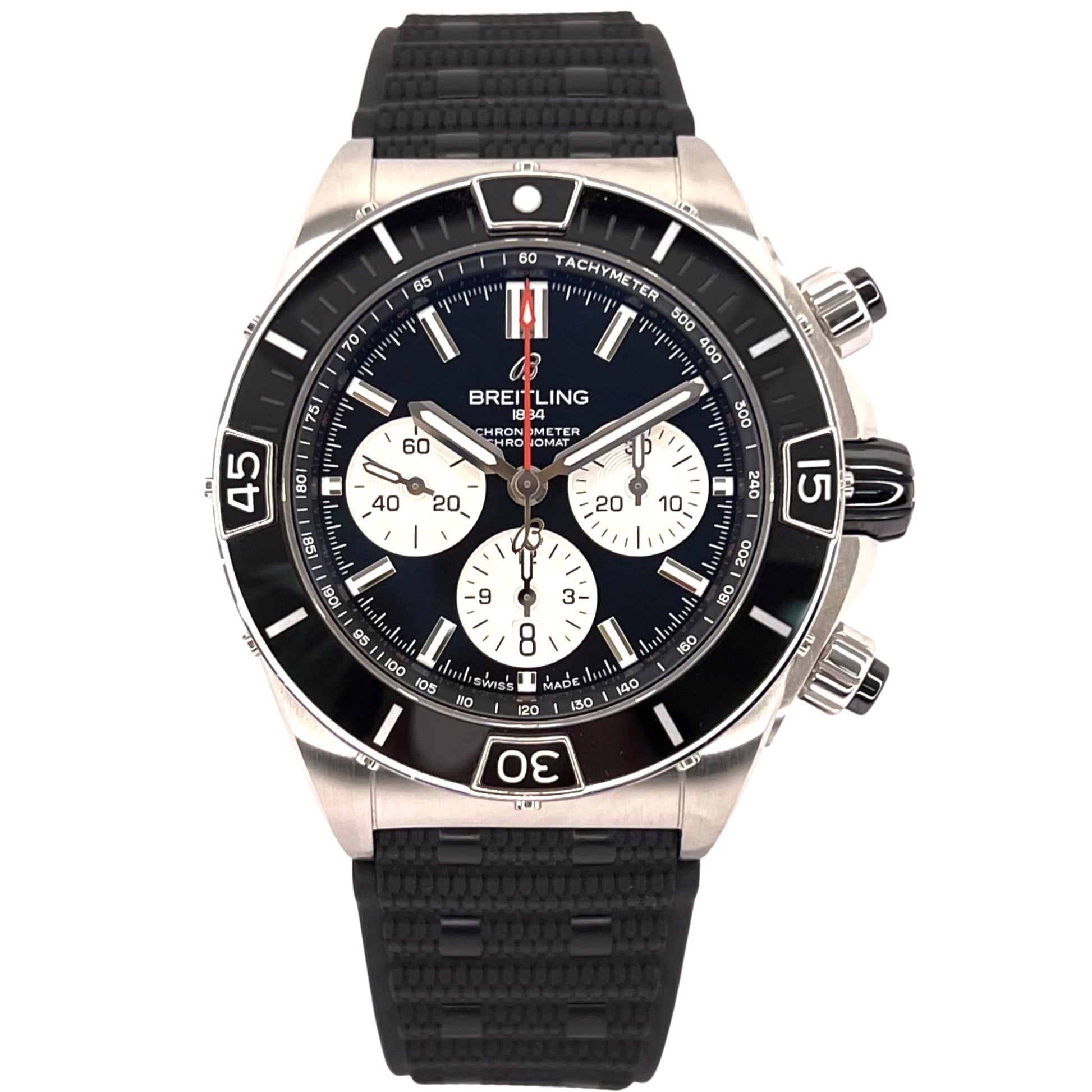 Breitling Super Chronomat B01 44mm Black Dial Rubber Strap AB0136251B1S1
