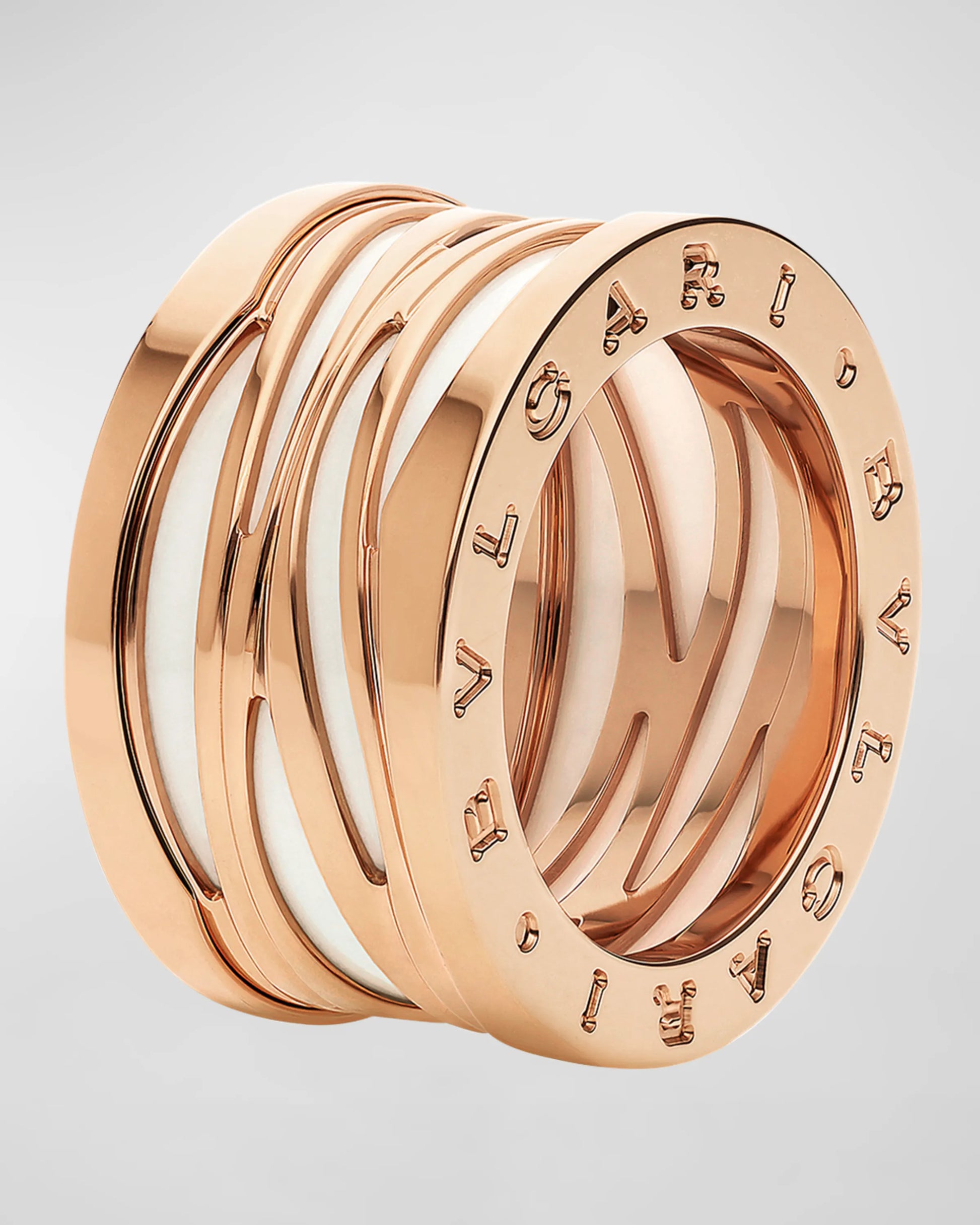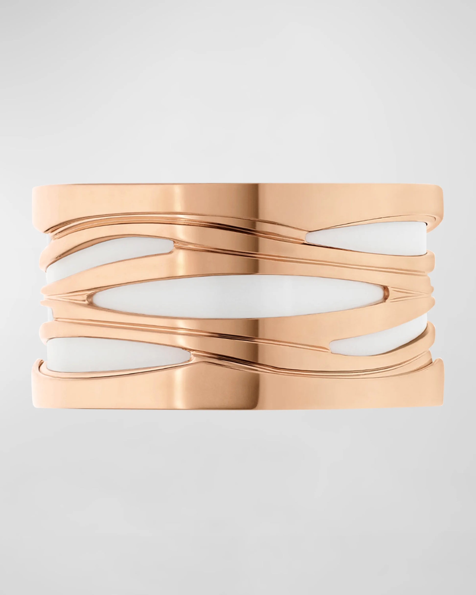 BULGARI B.Zero1 18k Rose Gold 4-Band Ring with White Ceramic, EU 50 / US 5.5