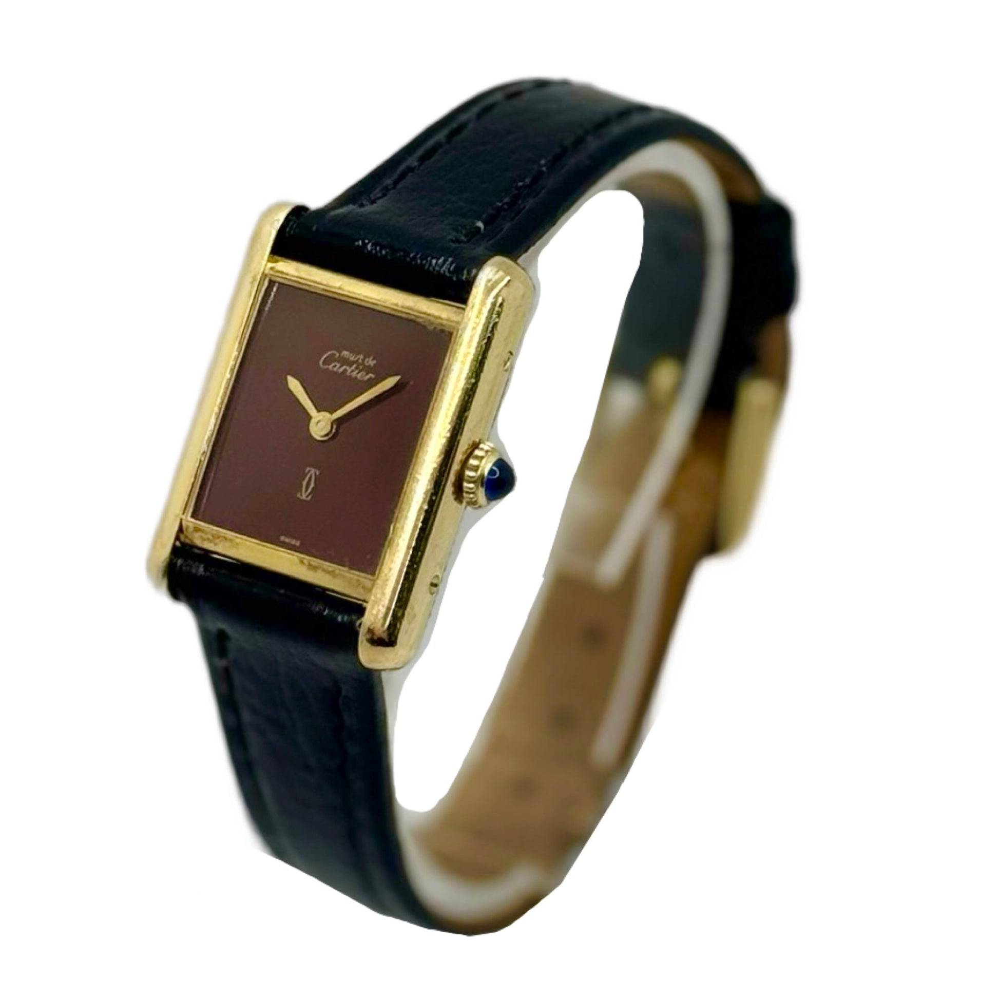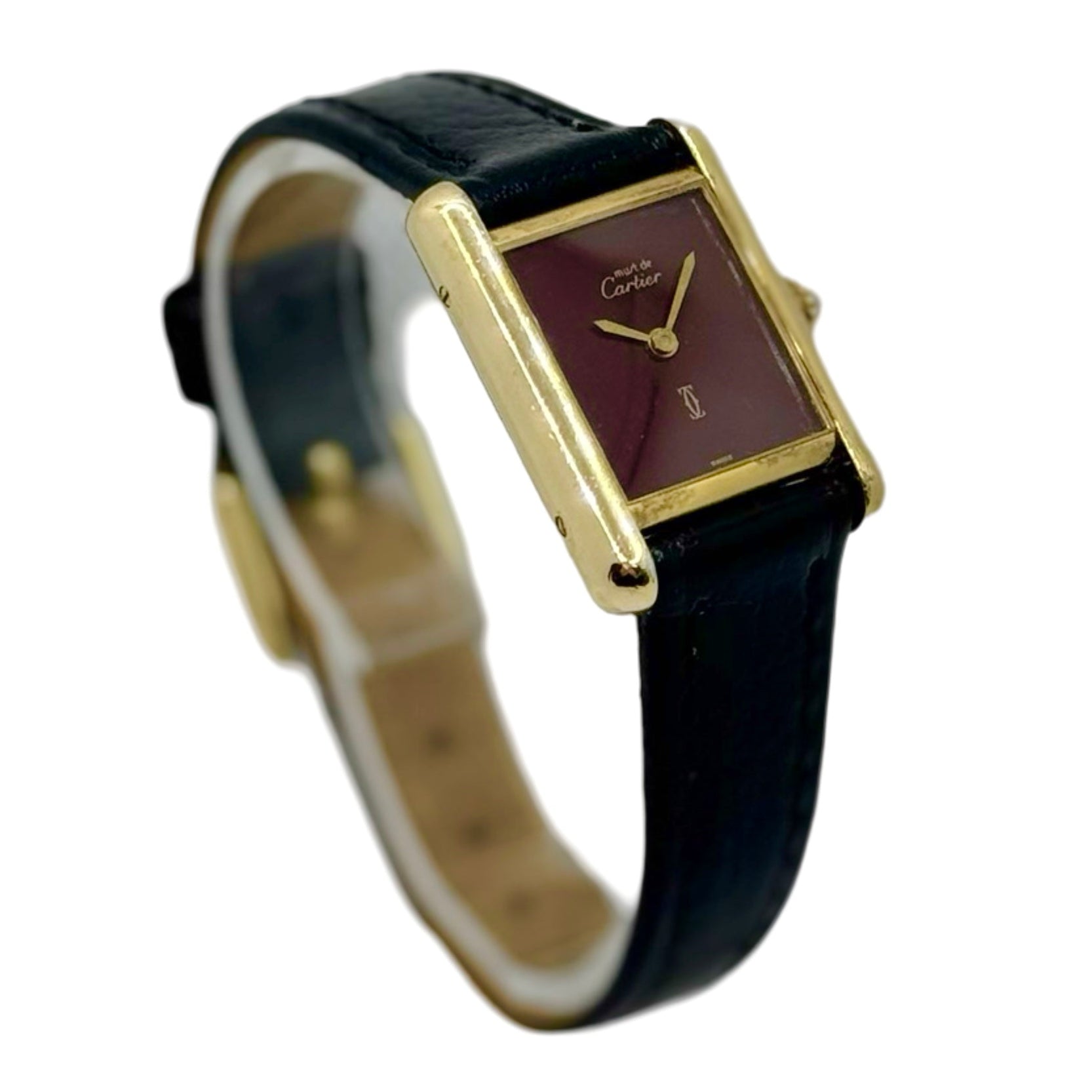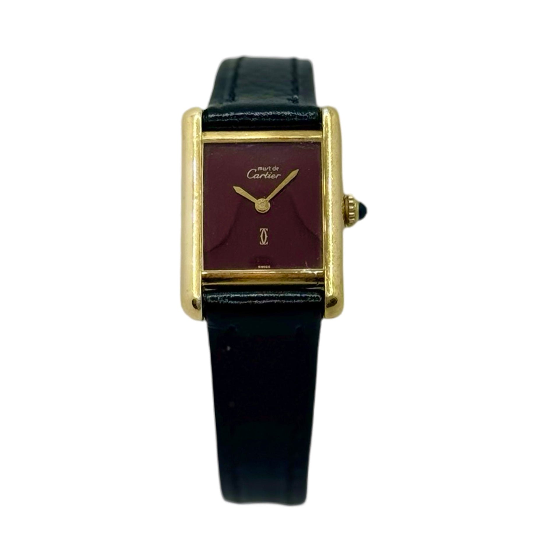 Cartier Must De Cartier Tank Small 925 Vermeil Burgundy Dial Black Strap