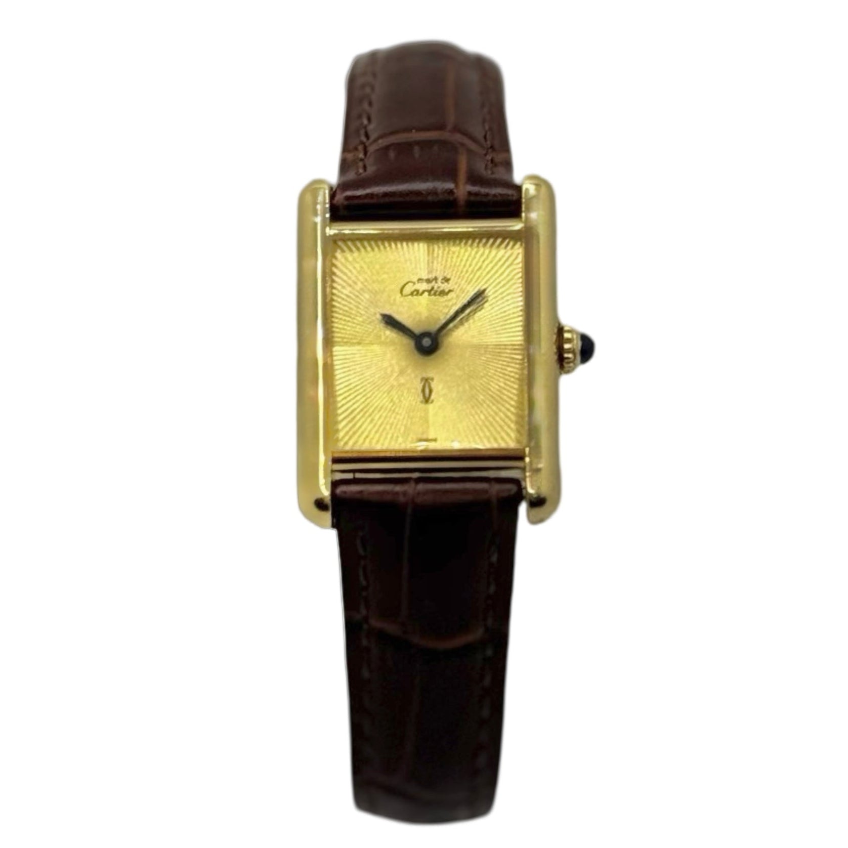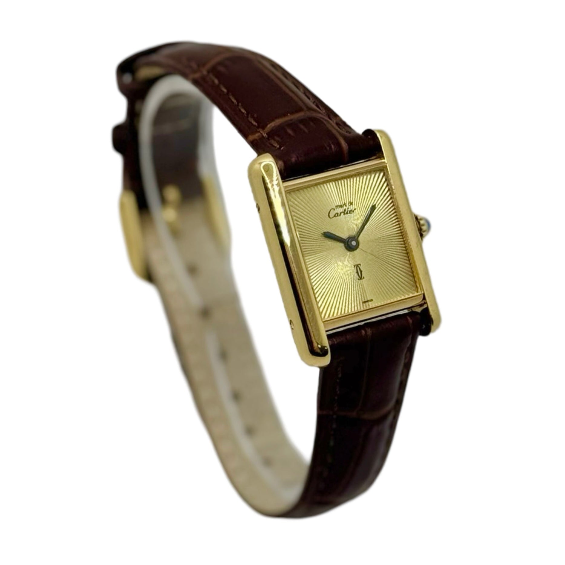 Cartier Must De Cartier Tank Small 925 Vermeil Champagne Guilloché Sunburst Dial