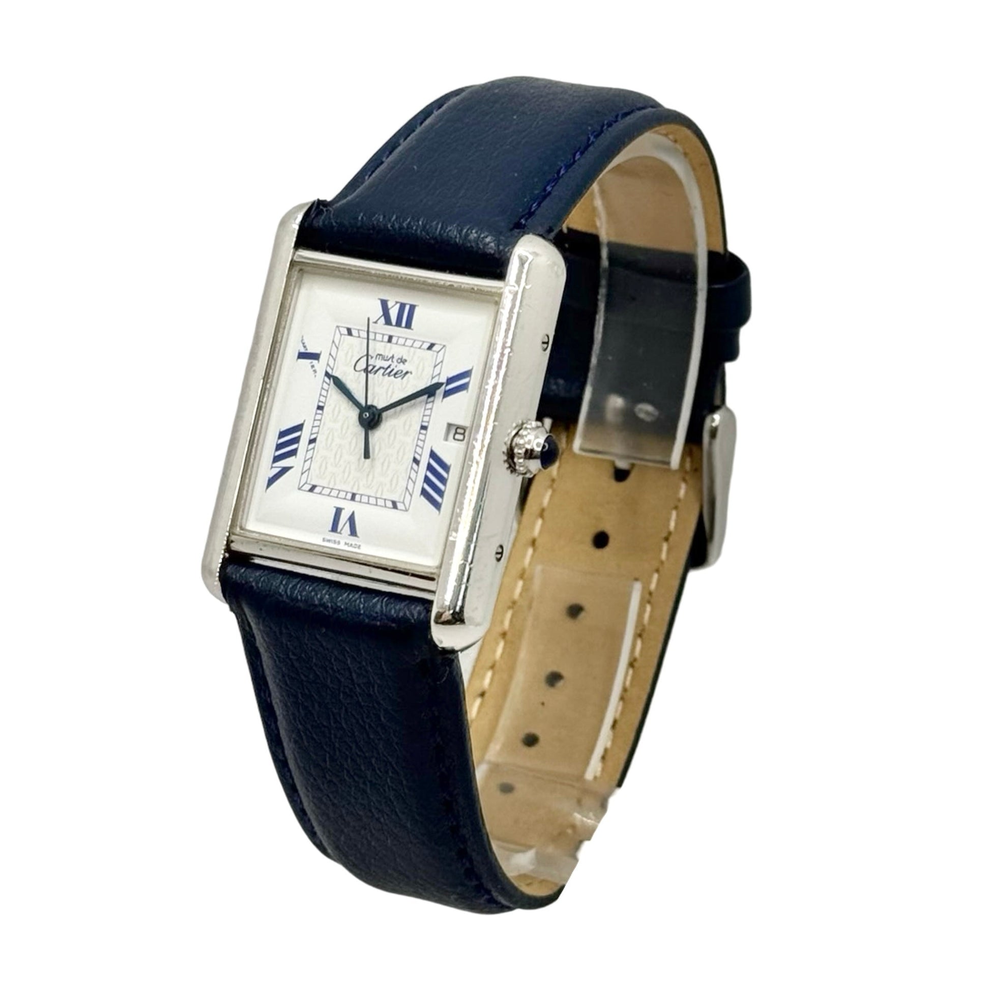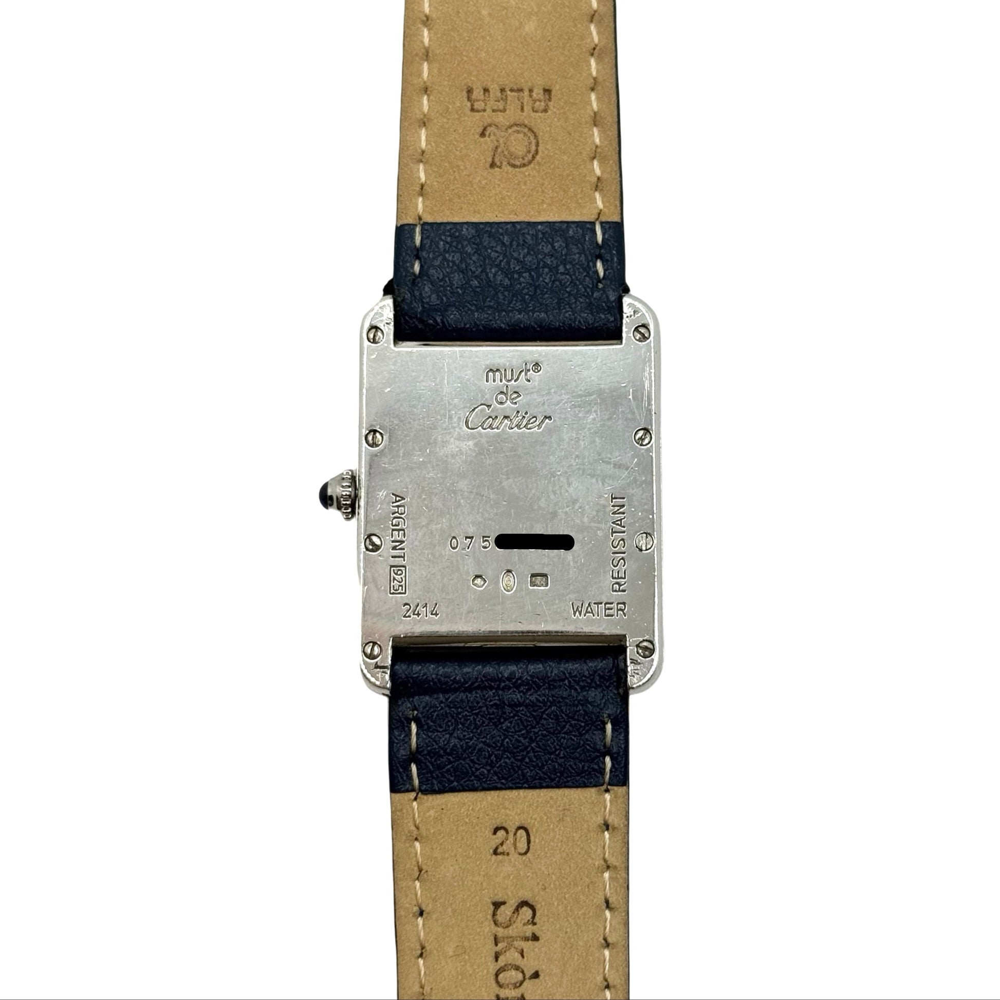 Cartier Must De Cartier Tank Mid Size 925 Silver White Dial Leather Strap Ref.2414