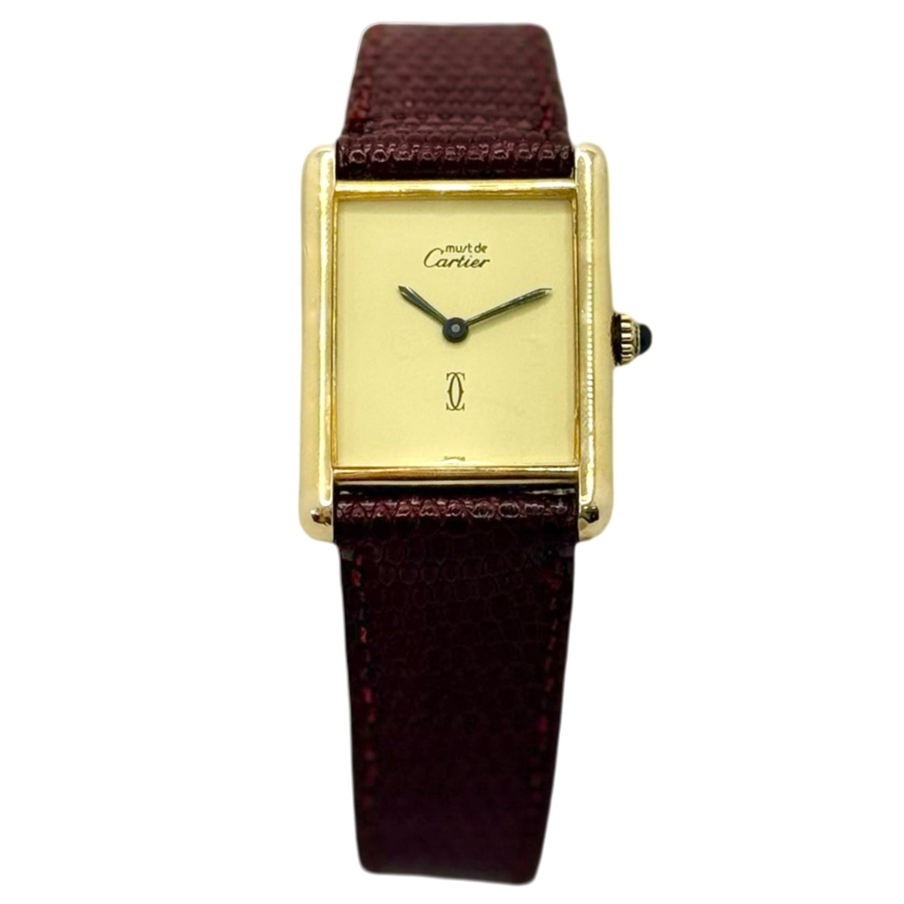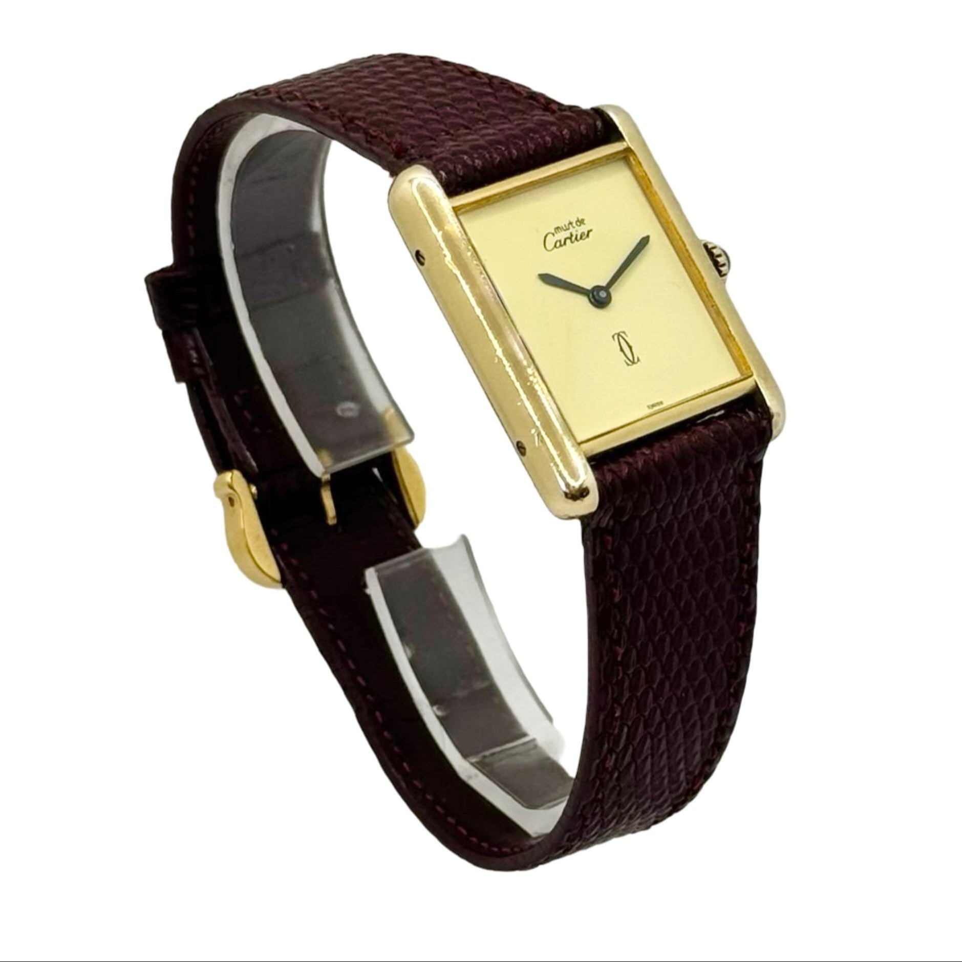 Cartier Must De Tank Mid Size 23mm Lemon Dial Brown Strap