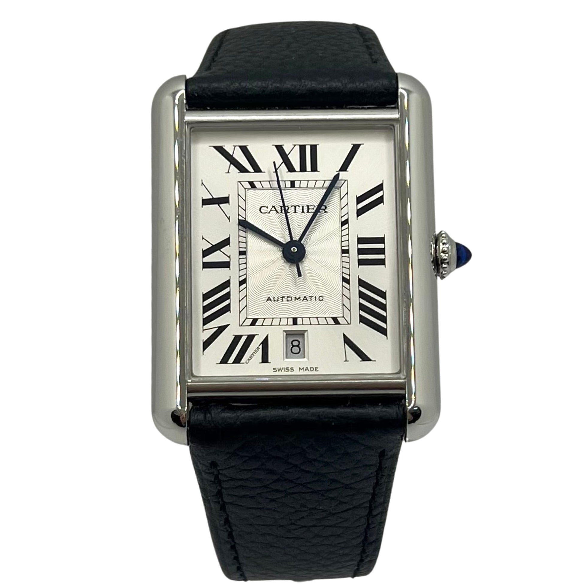 Cartier Tank Must XL Silver Dial Black Leather Strap Ref. WSTA0040