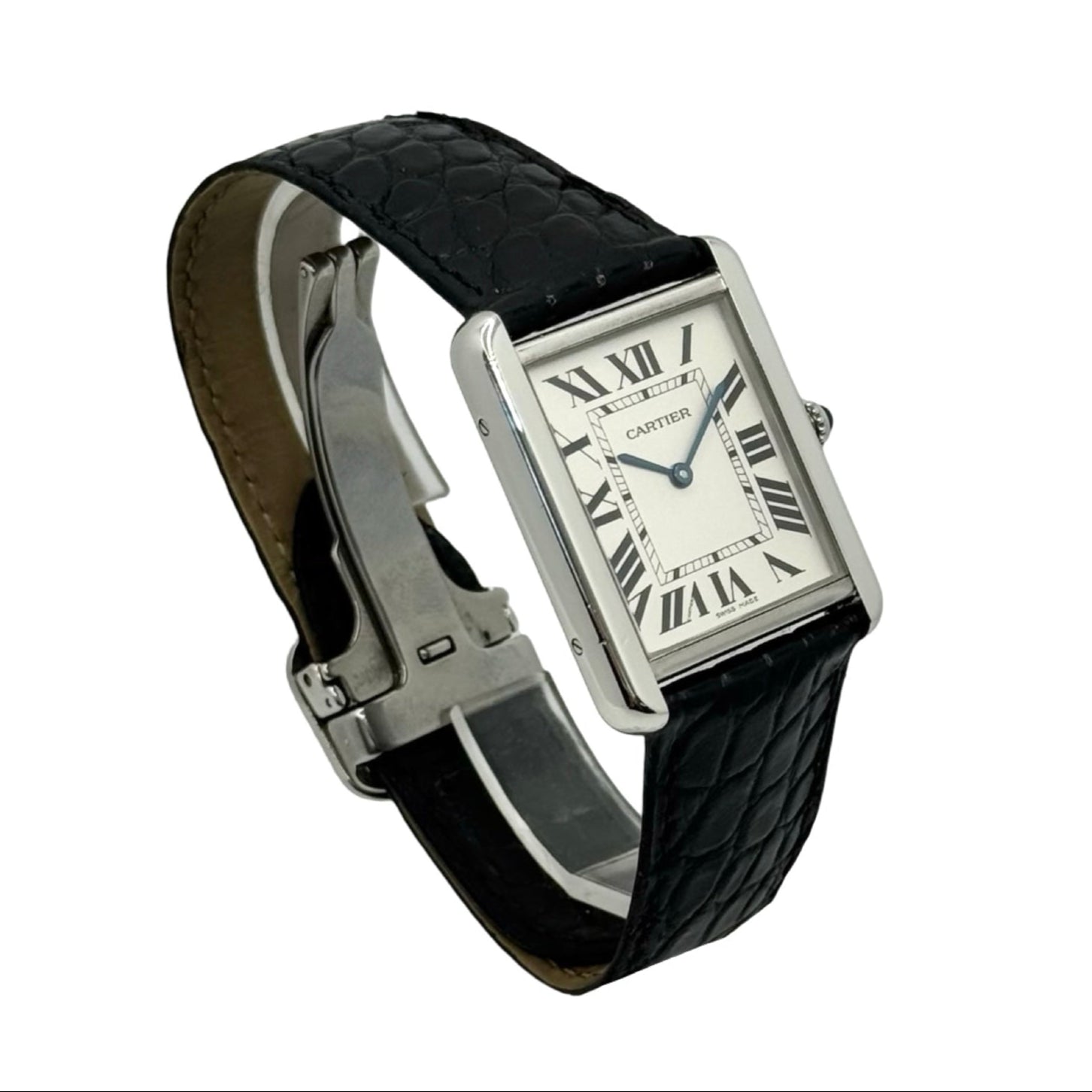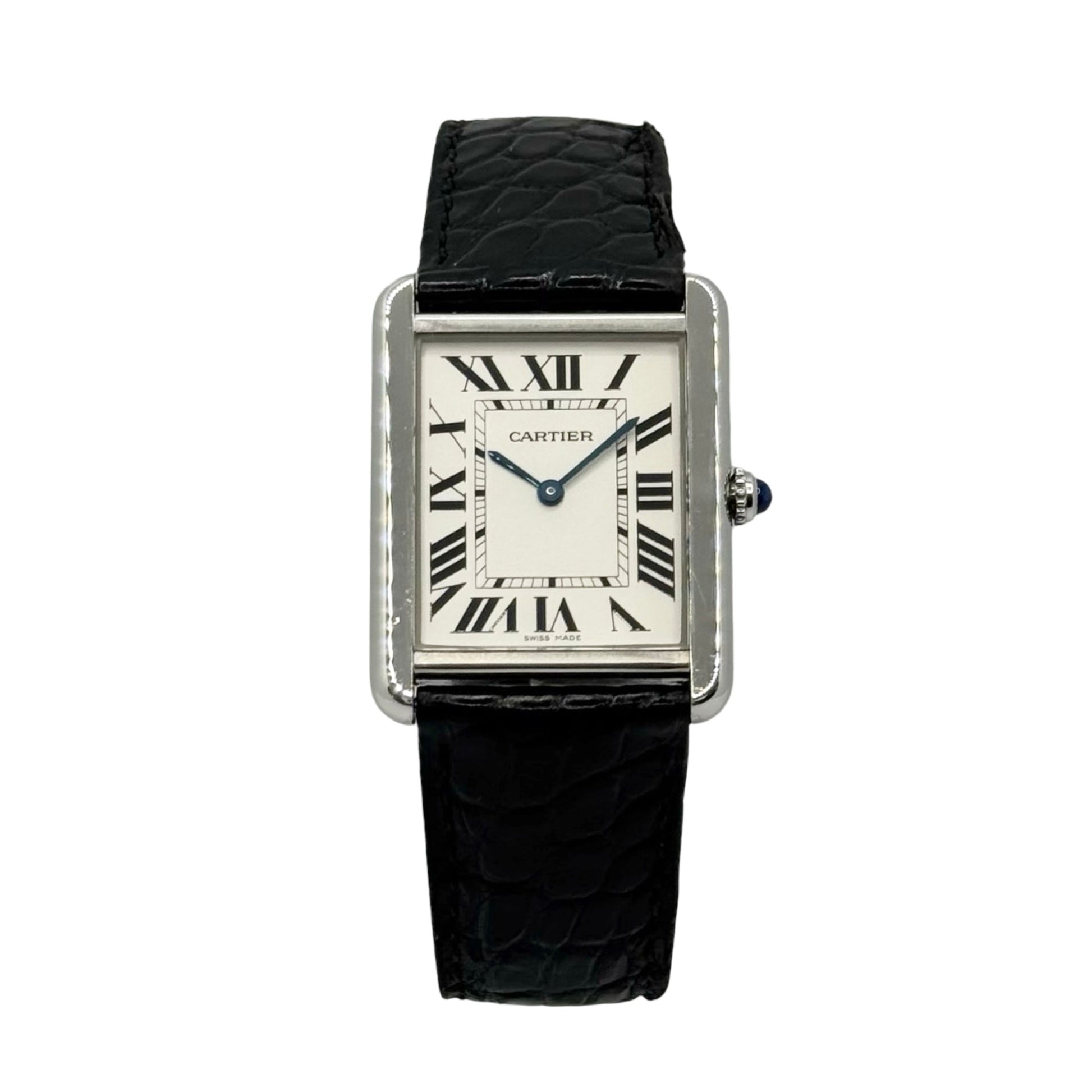 Cartier Tank Solo Full Size White Dial Black Leather Strap 2715/ W1018355