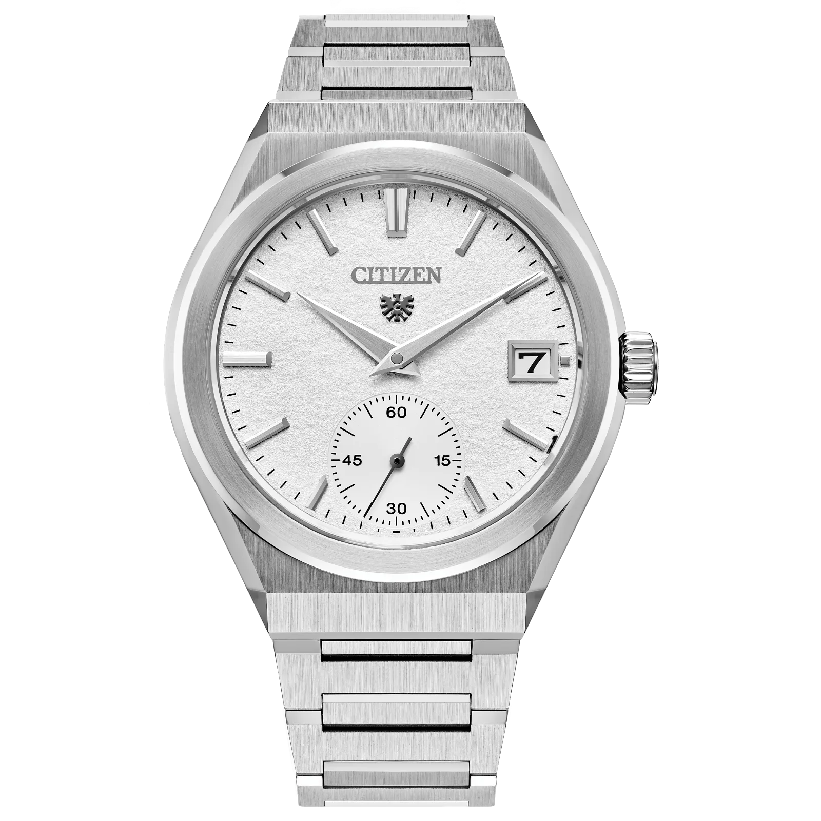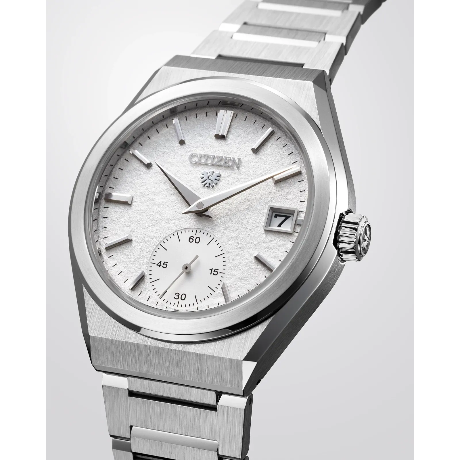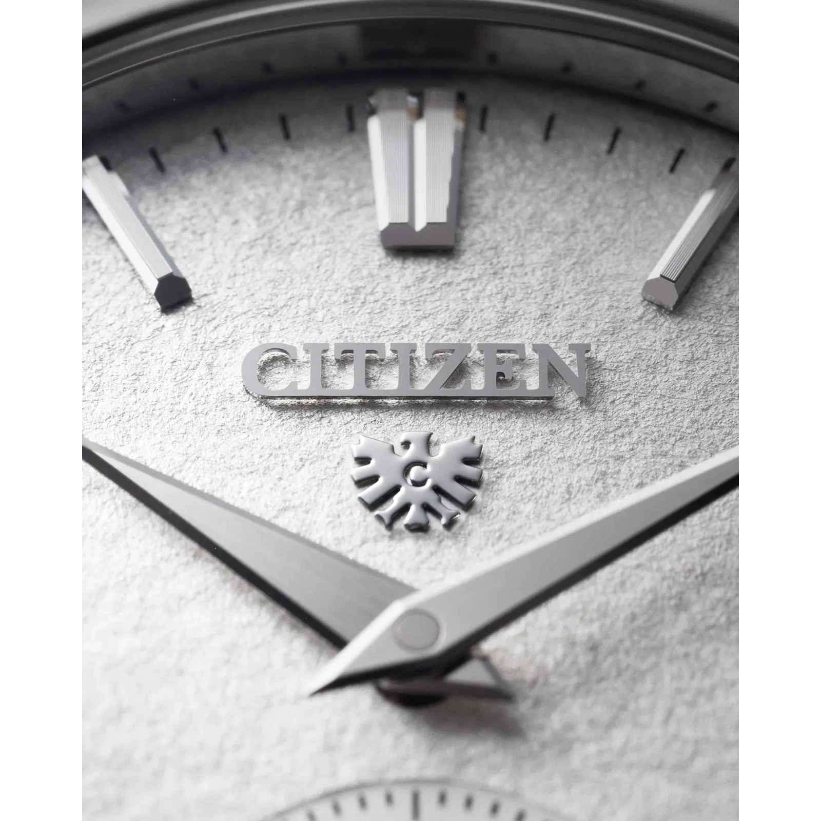 An anti-reflective sapphire crystal protects its white dial, with an electroformed process used to evoke a billowing expanse of white clouds, in turn creating a delightfully subtle interplay between light, texture, and color. Towards the top of the display is the eagle mark, symbolizing the twin ideals of The CITIZEN – foresight and dedication to the pursuit of ideals, as well as the enduring connection between watch and wearer. Inside, the mechanical Citizen Caliber 0210 is at work, with the automatic movement accurate to -3 to +5 seconds per day, featuring a 60-hour power reserve, and visible with its skeletonized rotor via an exhibition case back. Water resistant to 100 meters.