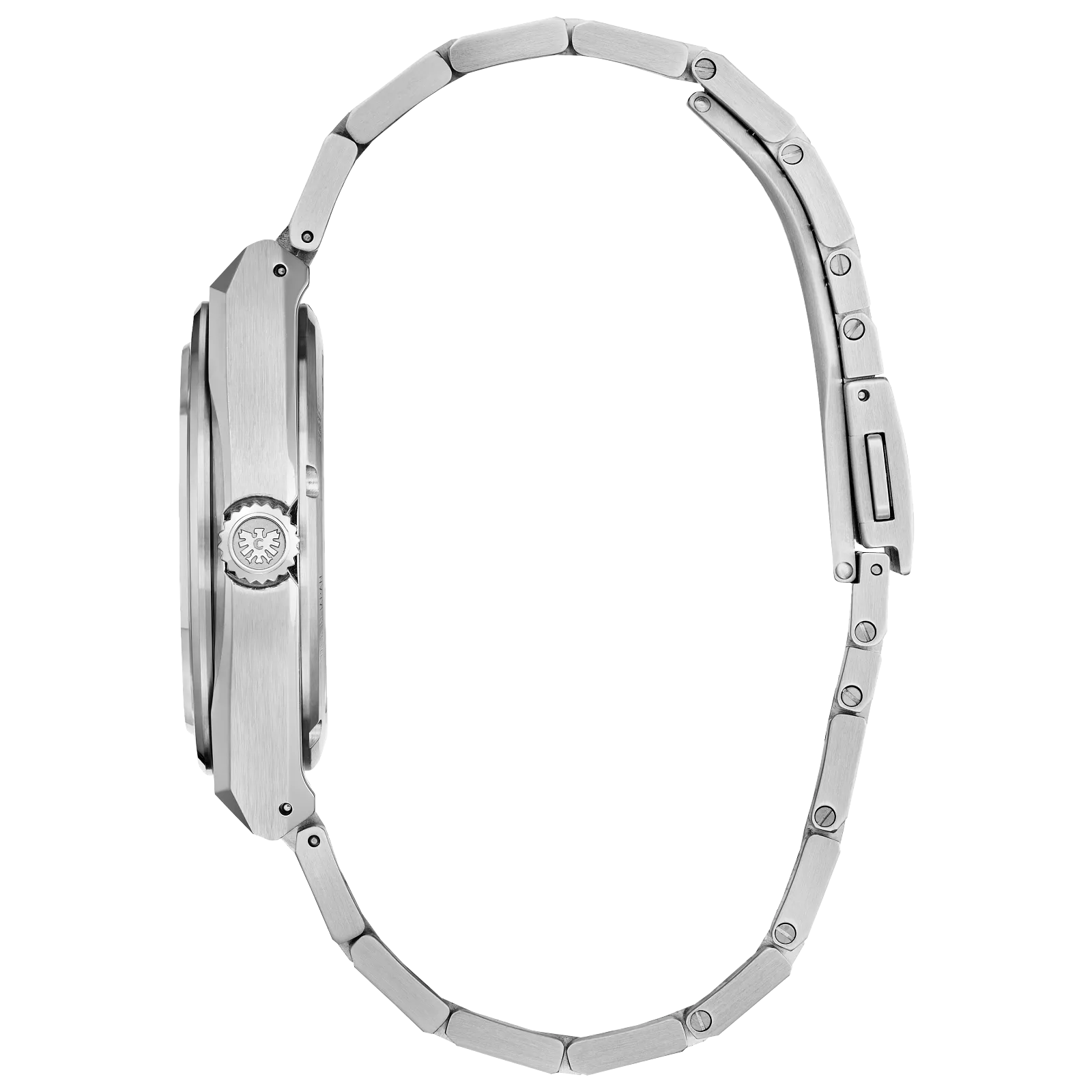 Superior precision meets the highest standards of quality in The CITIZEN. Representing the never-ending pursuit of the essence of the watch, this new addition serves as the ideal all-purpose timepiece, perfectly balancing mechanical refinement with aesthetic intrigue. On the wrist, the watch measures comfortably at 40mm, with its silver-tone stainless steel case faceted with sharp surfaces of brushed and polished finishing and complete with an integrated bracelet.