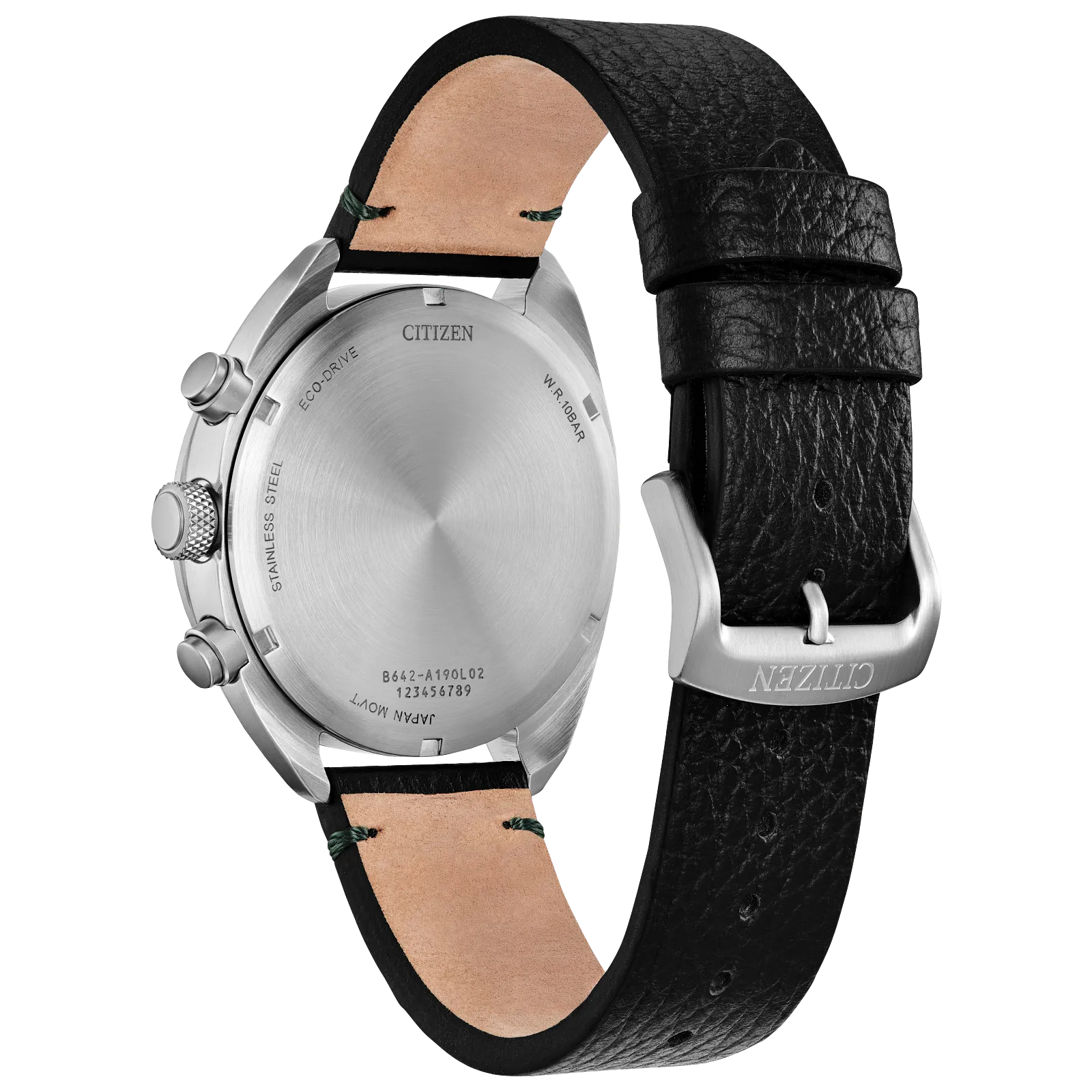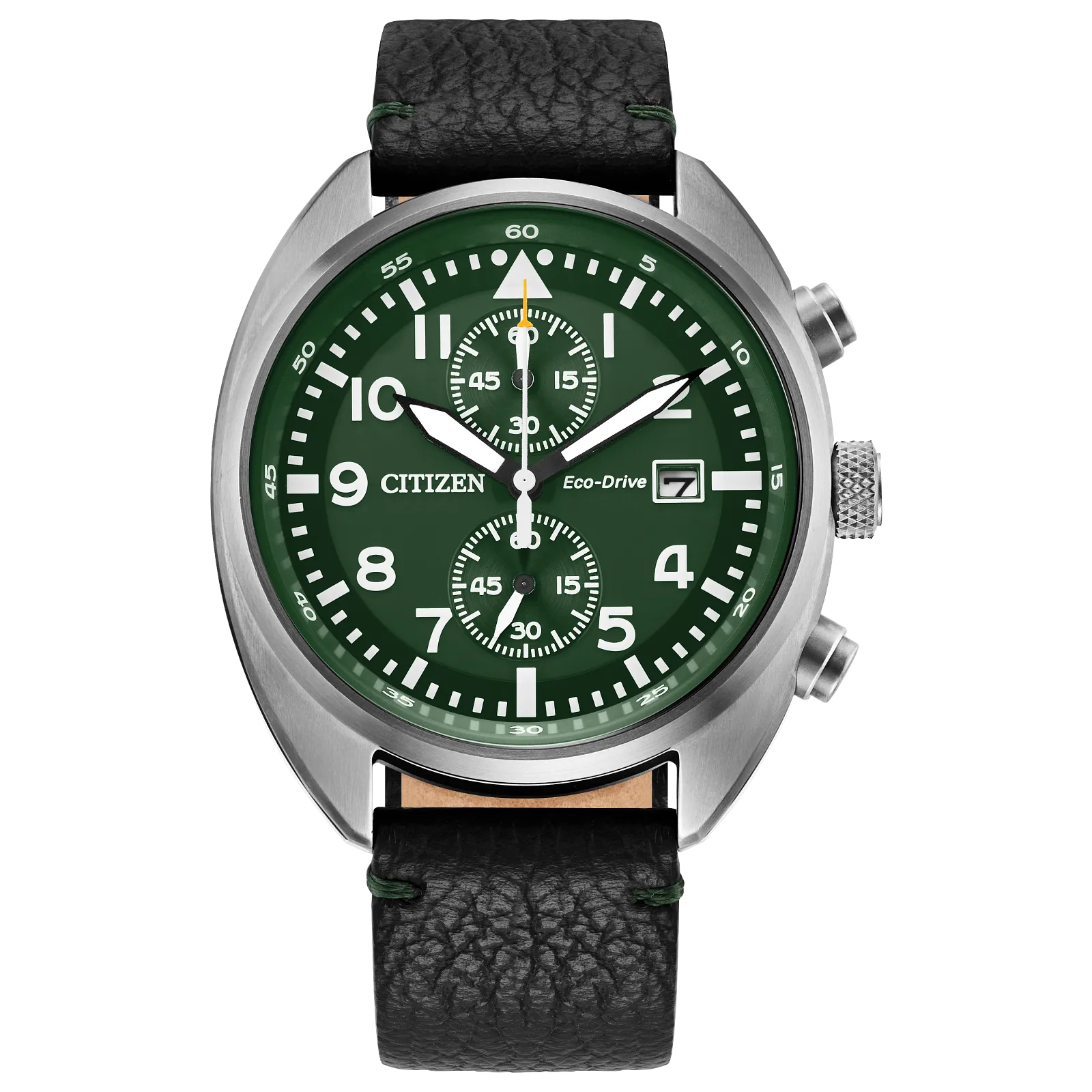 Citizen Sport Casual Chronograph Green Dial Black Leather Strap CA7041-07X