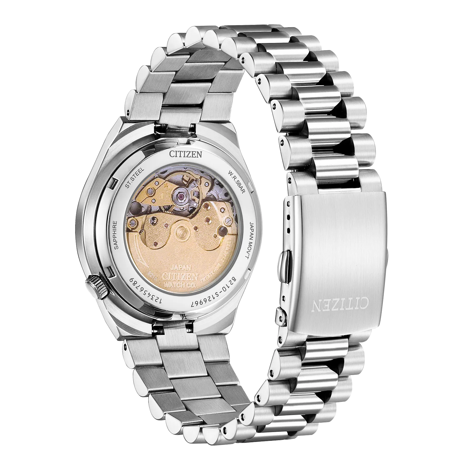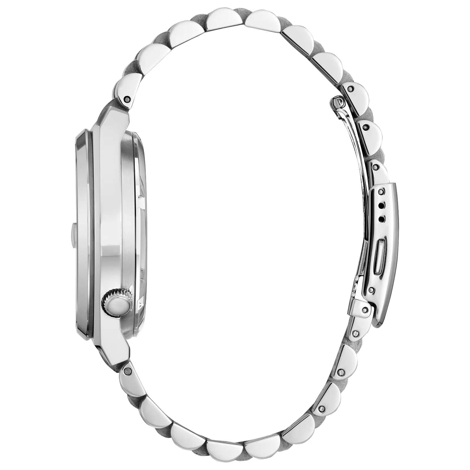 The TSUYOSA Automatic, from the NJ015 series, brings ultramodern sports styling right to your wrist. Executed in a versatile 40mm footprint, the sophisticated design of the watch makes a strong impression via a silver-tone stainless steel case and a seamlessly integrated, matching bracelet. Underneath an anti-reflective sapphire crystal, the sporty timepiece makes use of a sunray burgundy dial, with a 3 o’clock date window and contrasting silver-tone details adding to its classic aesthetic. Powered by an automatic movement and offering up to 50 meters of water resistance, the refined timepiece is a daily wearing choice ready for work, play, and everything in between. Caliber 8210.