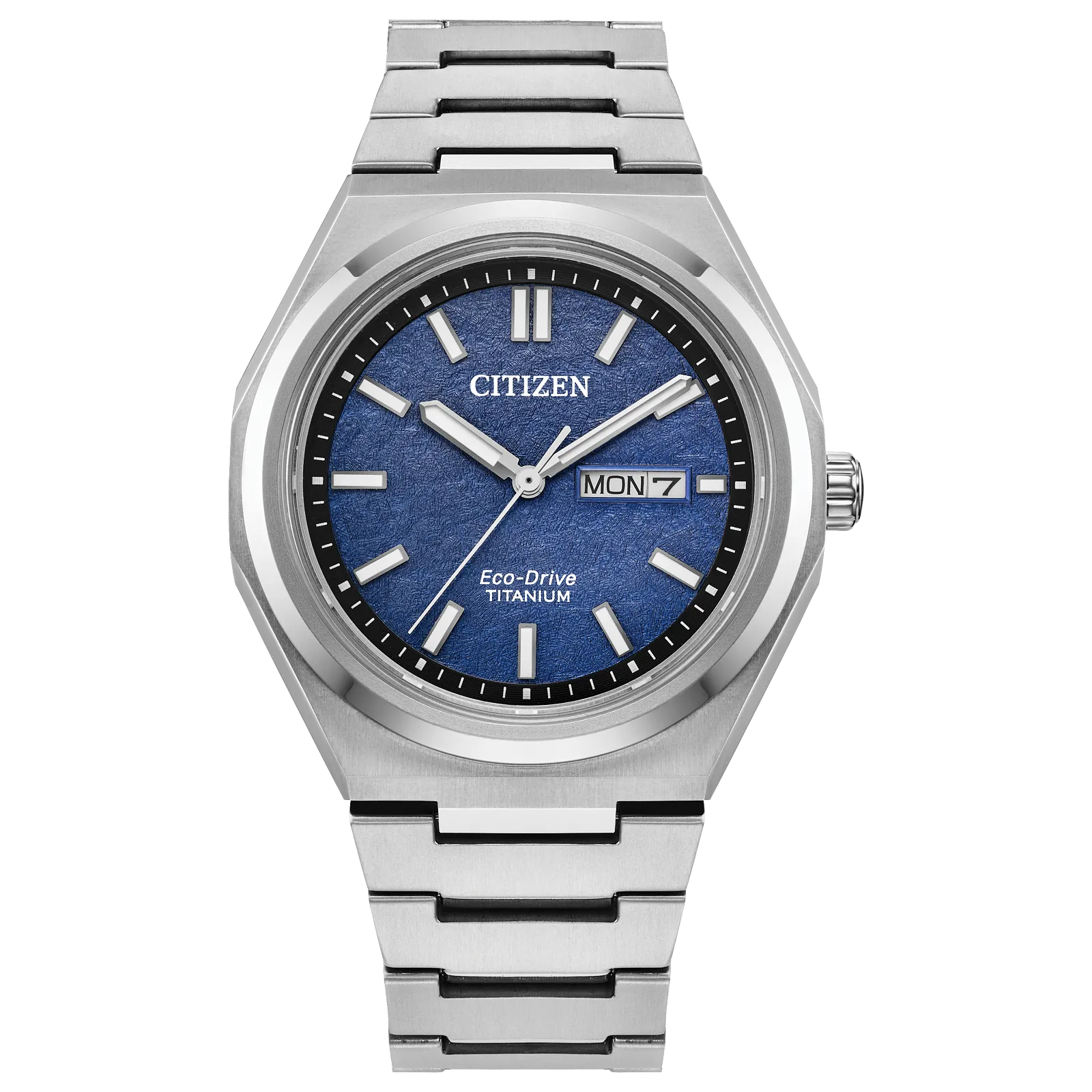 Citizen Zenshin Three-hand Super Titanium Blue Dial AW0130-85L