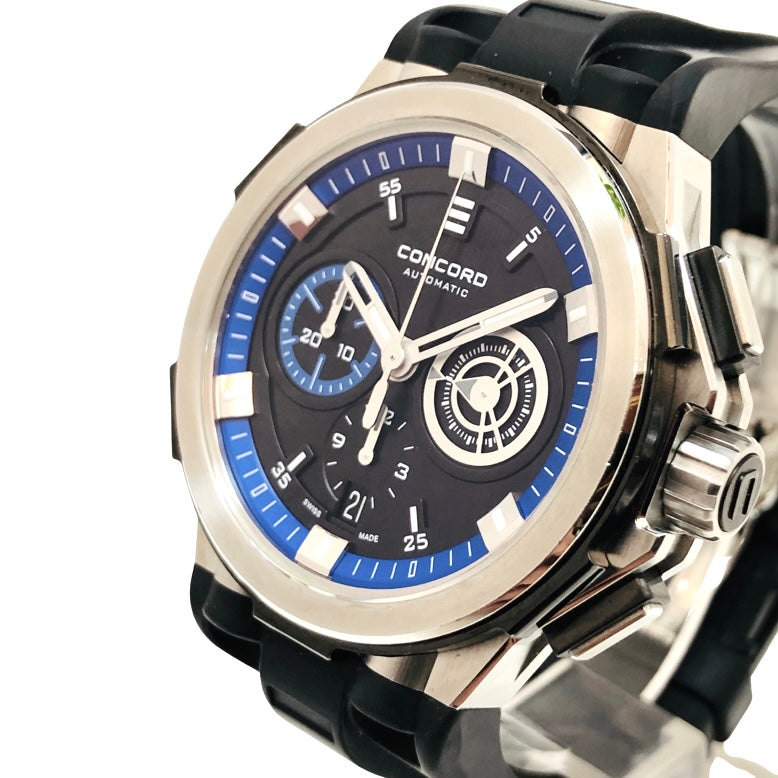 The High-Tech Concord C2 Chronograph. Very ergonomic rubber strap on a deployment buckle.