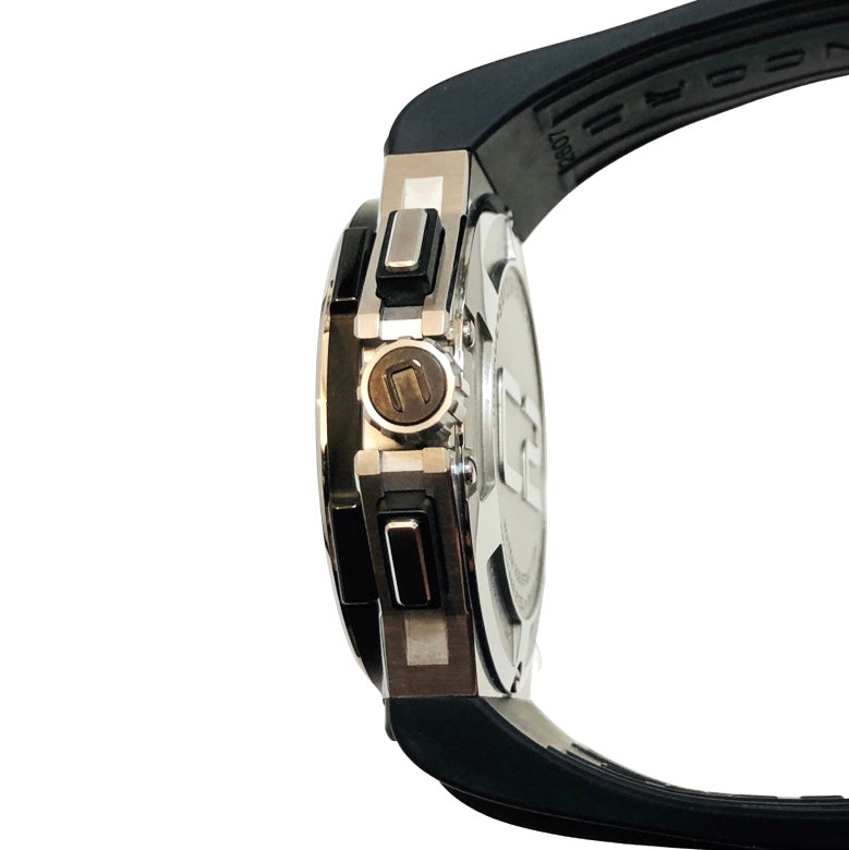 Nicely sculpted case with an integrated rubber strap. This Timepiece was hardly worn and as a result it is in excellent condition.