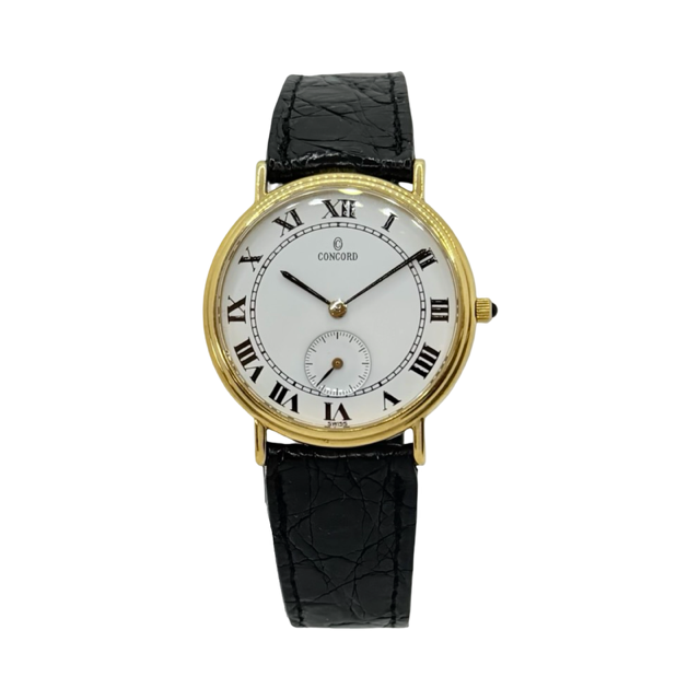 Concord Ultra Thin Quartz 32mm 18K Gold White Roman Dial Black Croco Strap 58-08-212