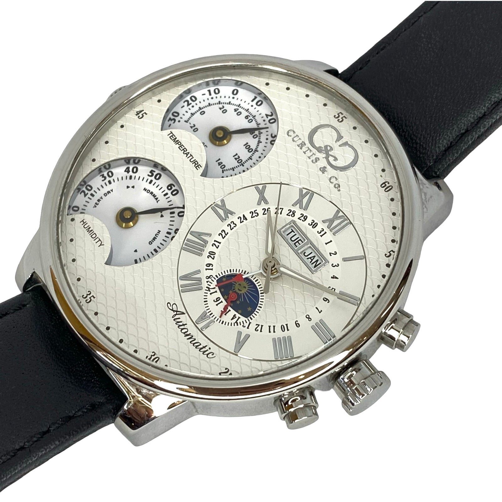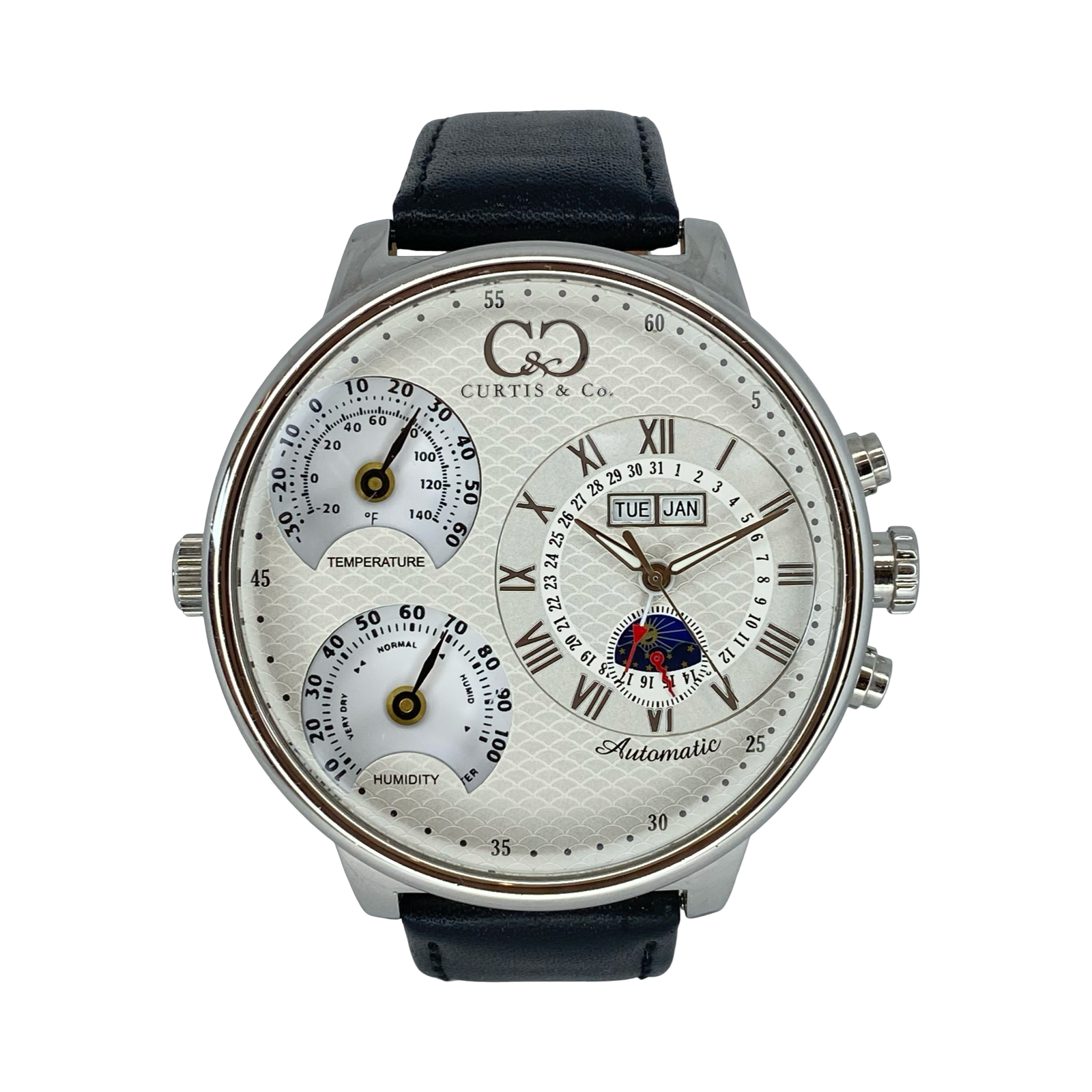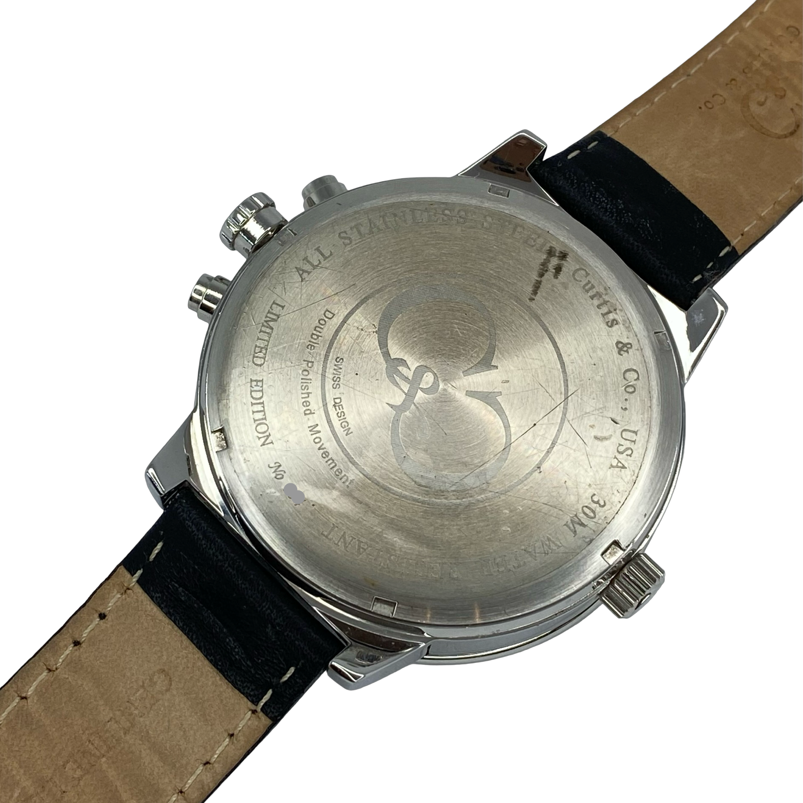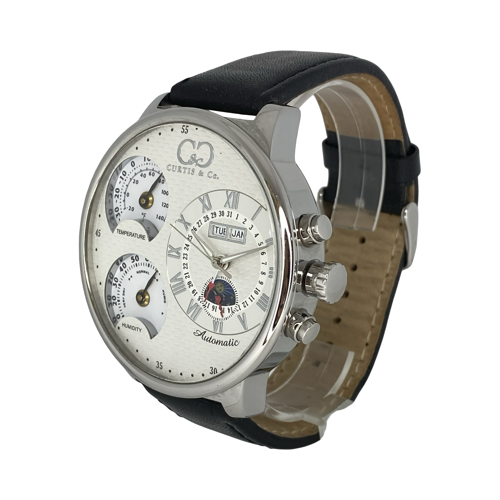 Curtis & Co Big Time Air Watch Automatic Triple Date Limited Edition White Dial Black Leather Strap