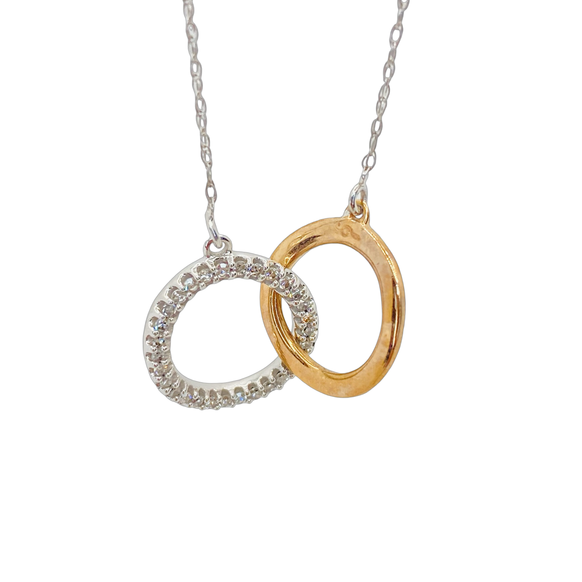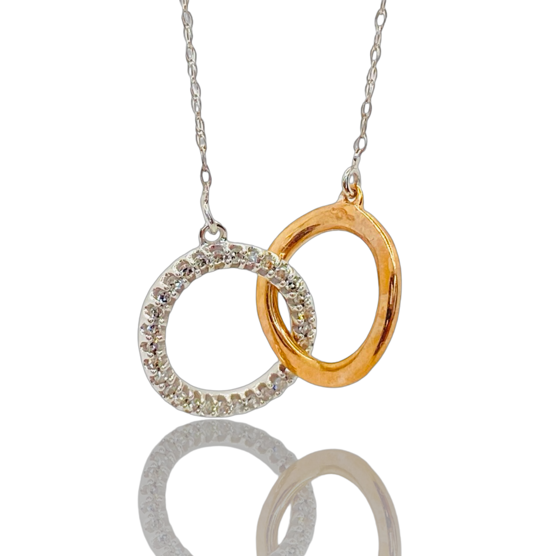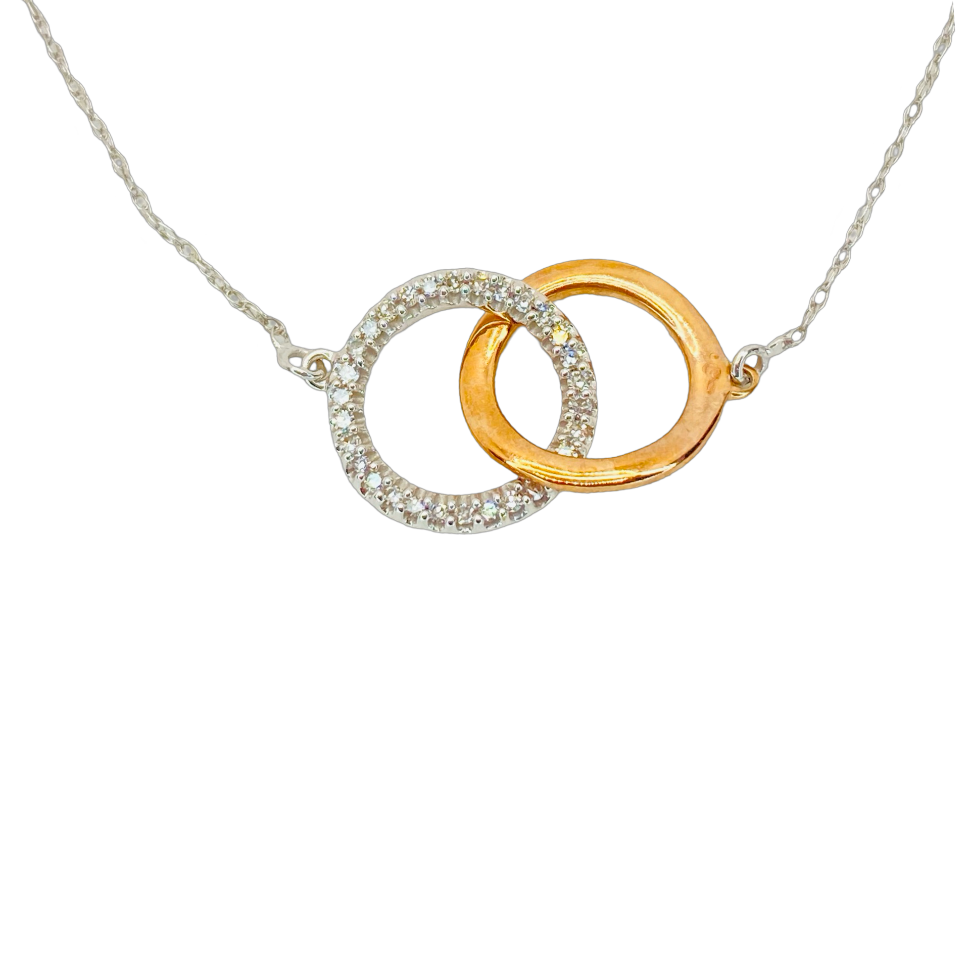 Estate Jewelry 10K White/Rose Gold Double Circle Necklace with Diamonds