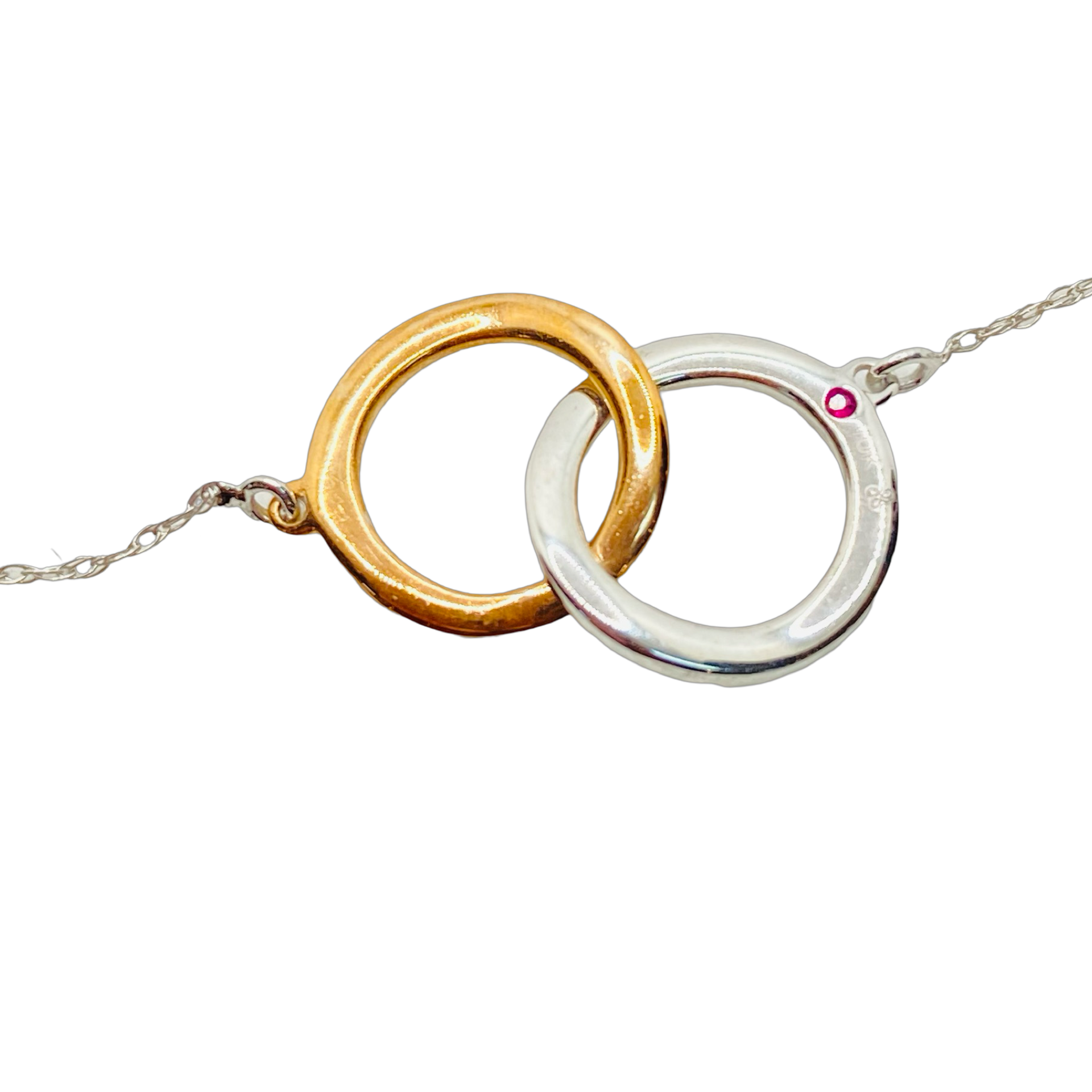 Estate Jewelry 10K White/Rose Gold Double Circle Necklace