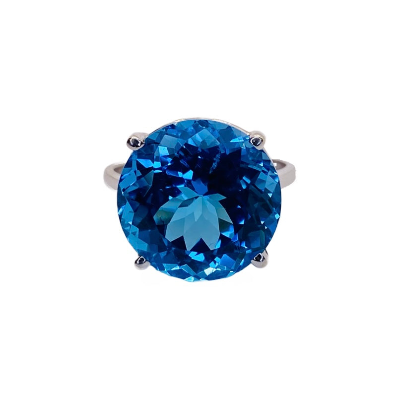 Estate Jewelry 14K White Gold Blue Topaz Ring