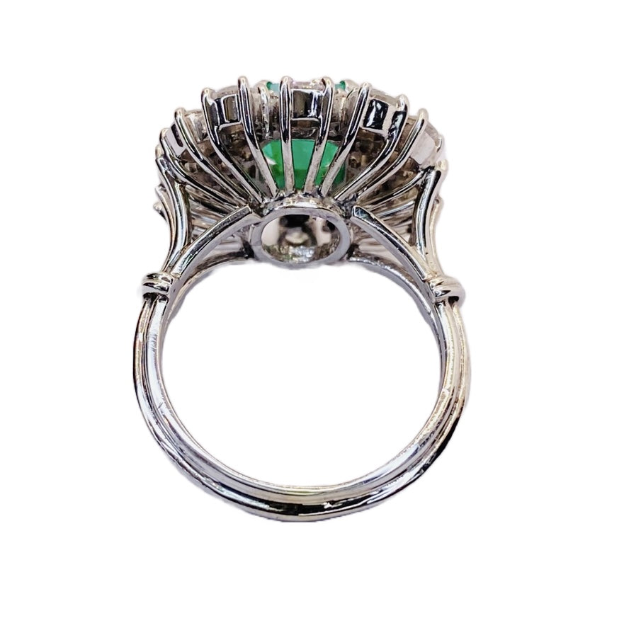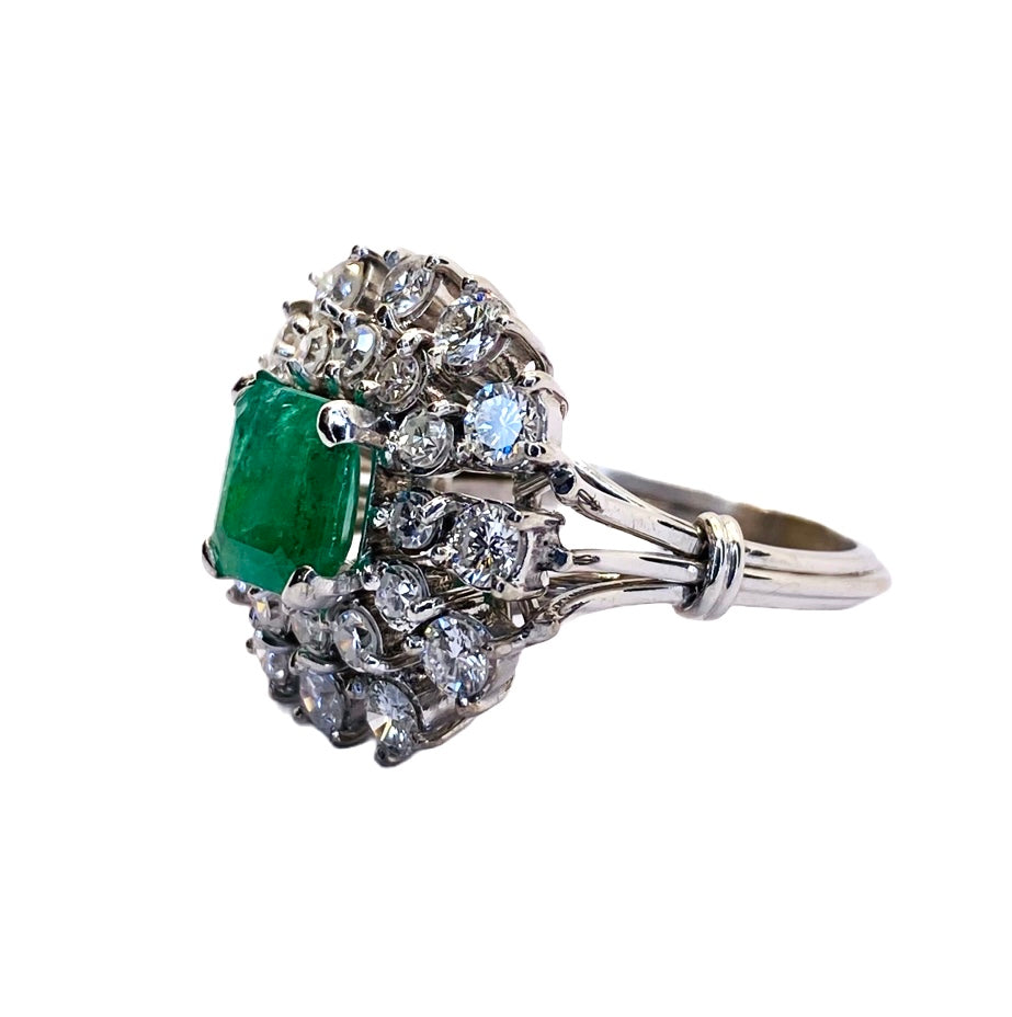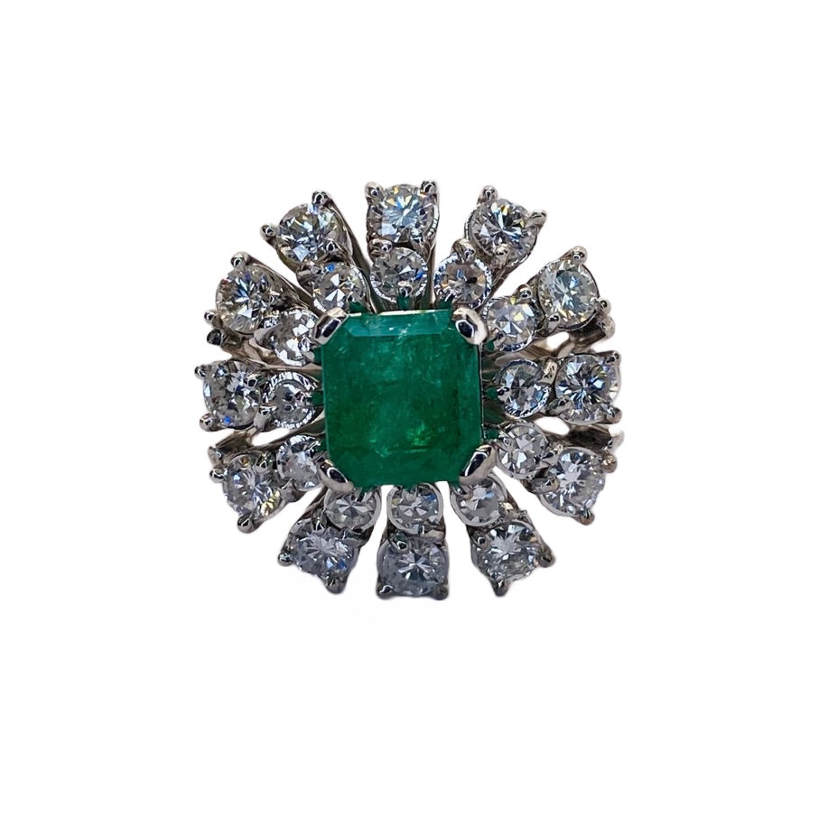 Estate Jewelry 14K White Gold Emerald and Diamond Ring