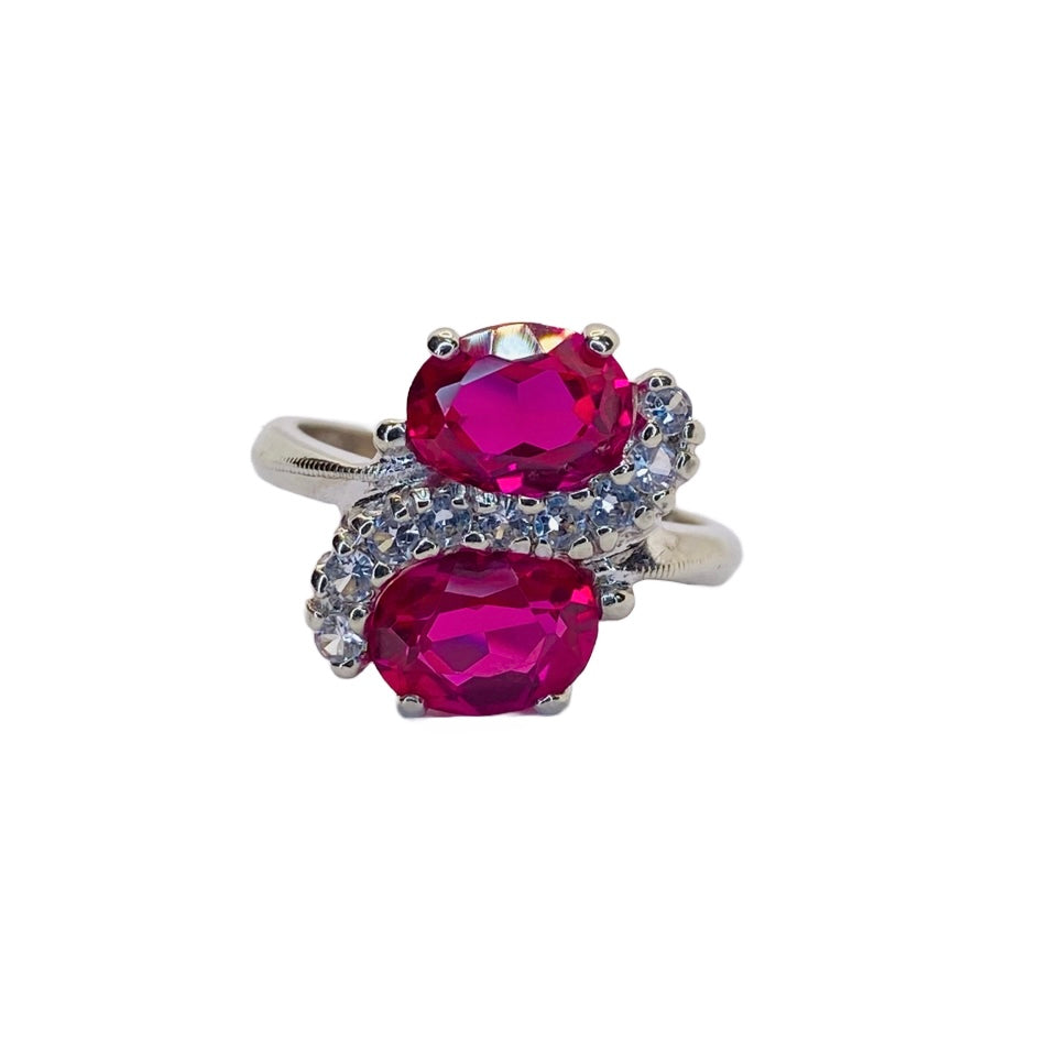 Estate Jewelry 14K White Gold Lab Created Ruby Ring