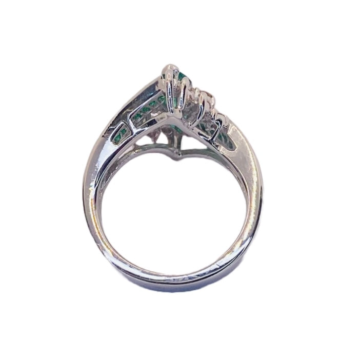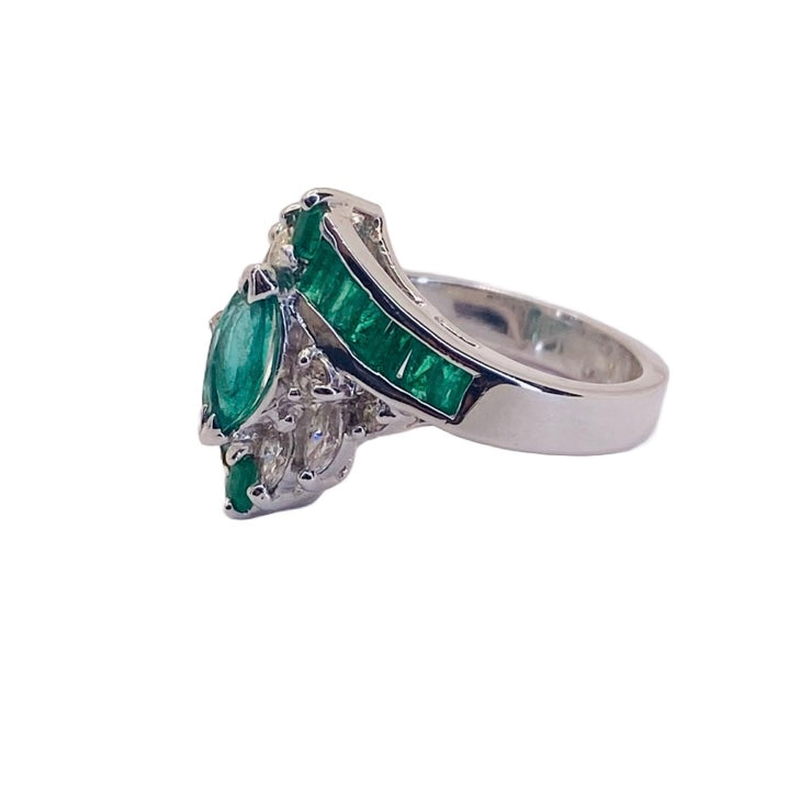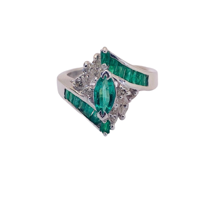 Estate Jewelry 14K White Gold Marquise and Baguette Emerald Ring