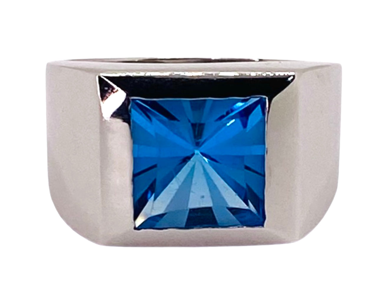 Estate Jewelry 14K White Gold Mens Blue Topaz Ring