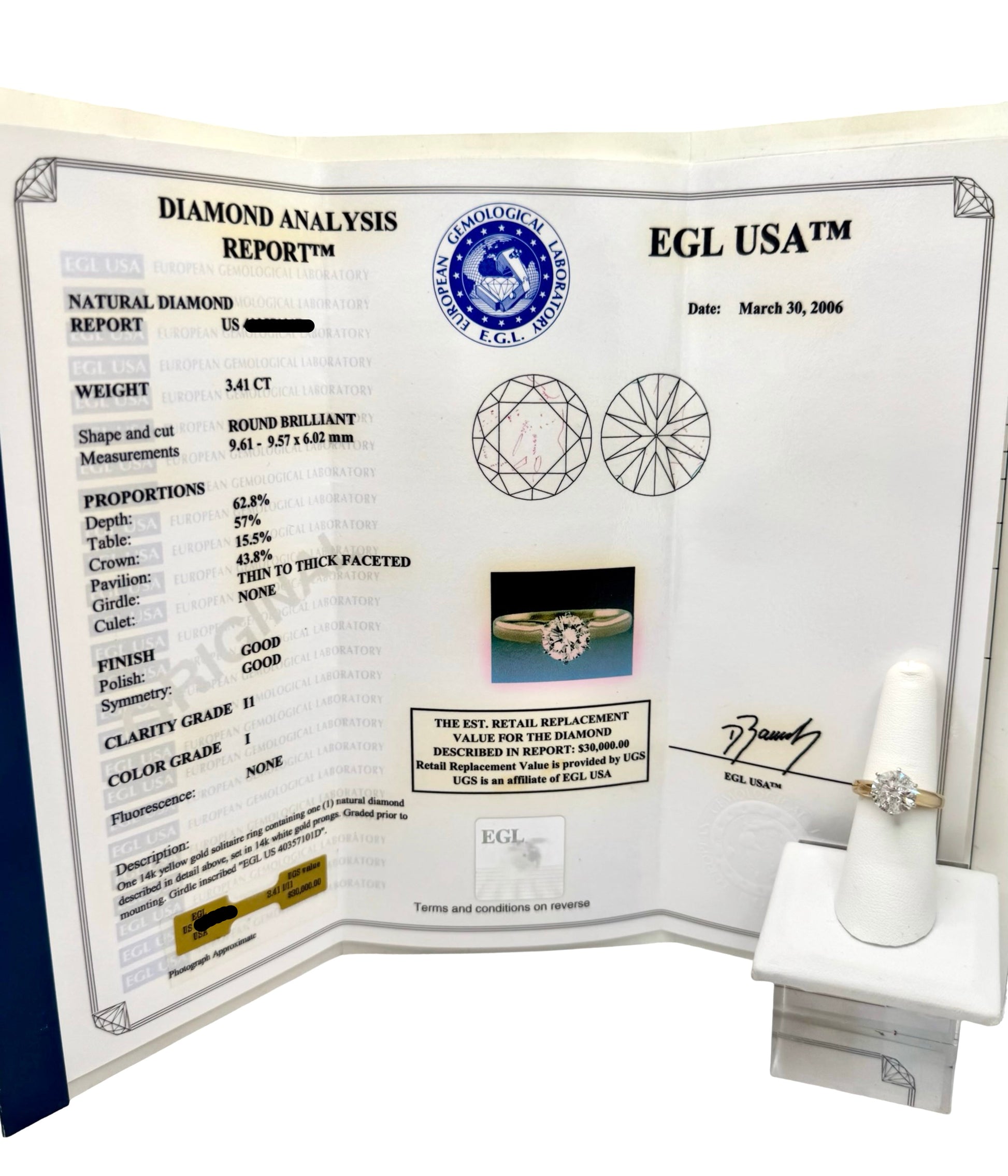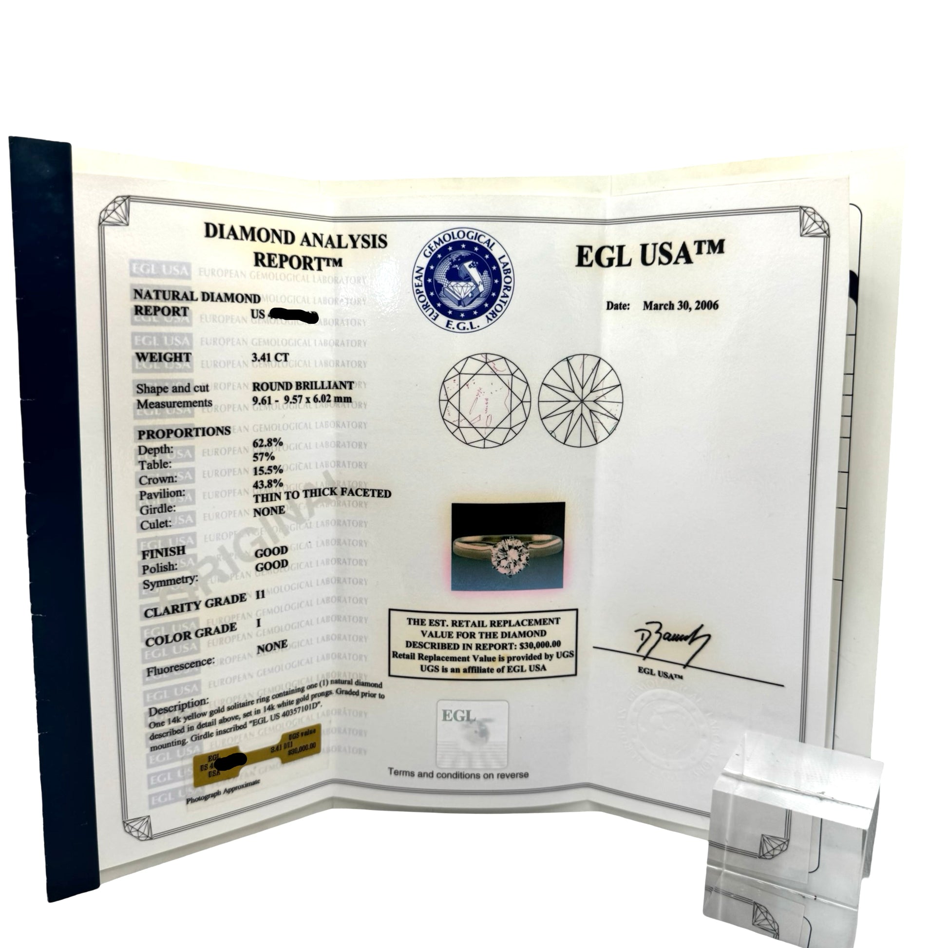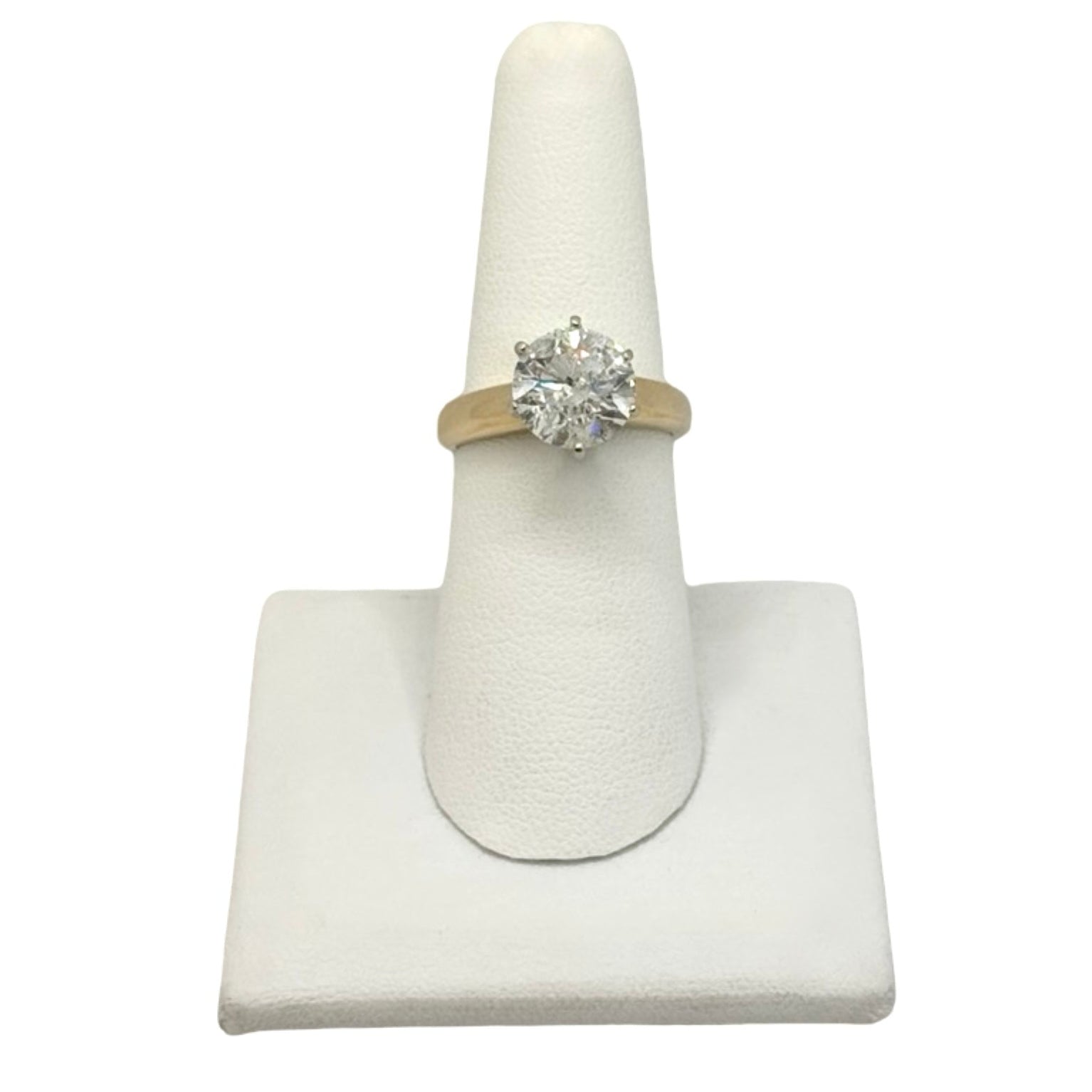14K Yellow Gold 3.41 Carats Round Brilliant Natural Diamond Solitaire Ring