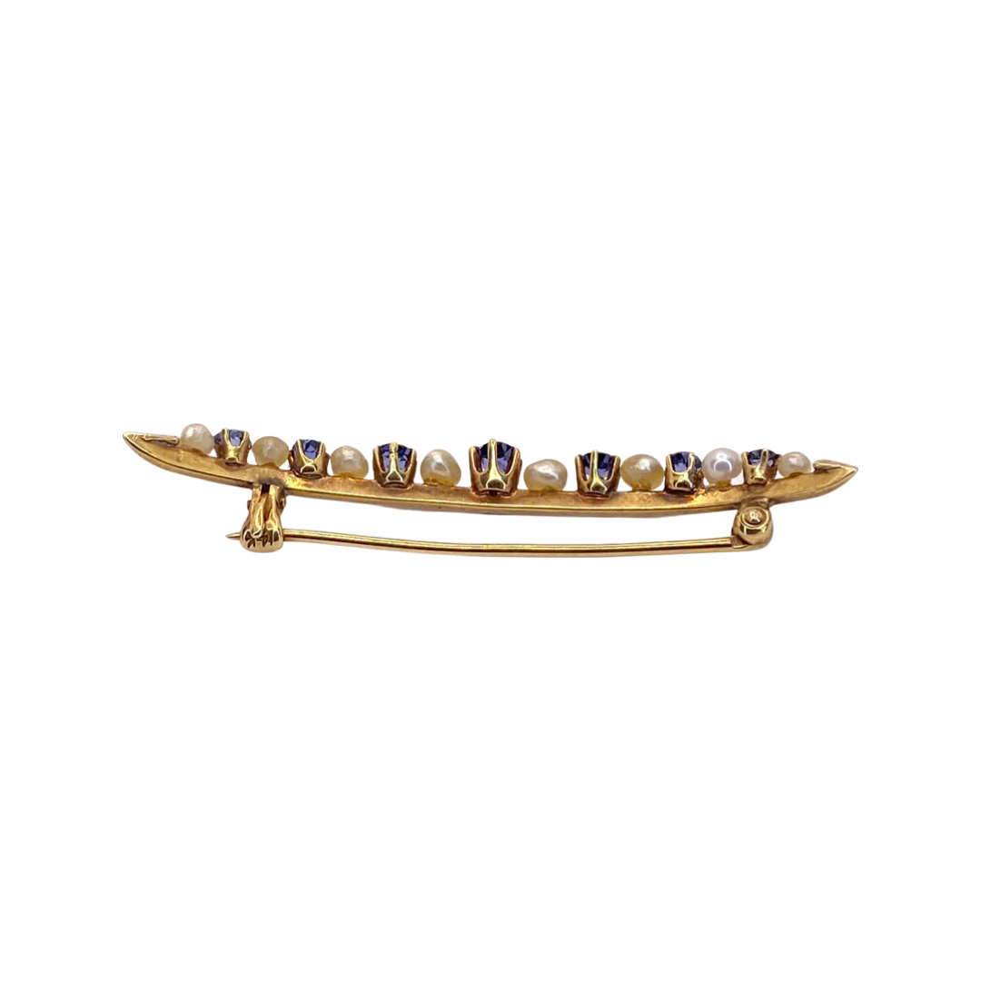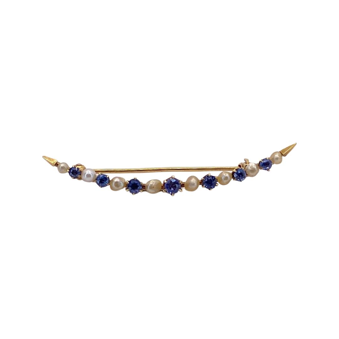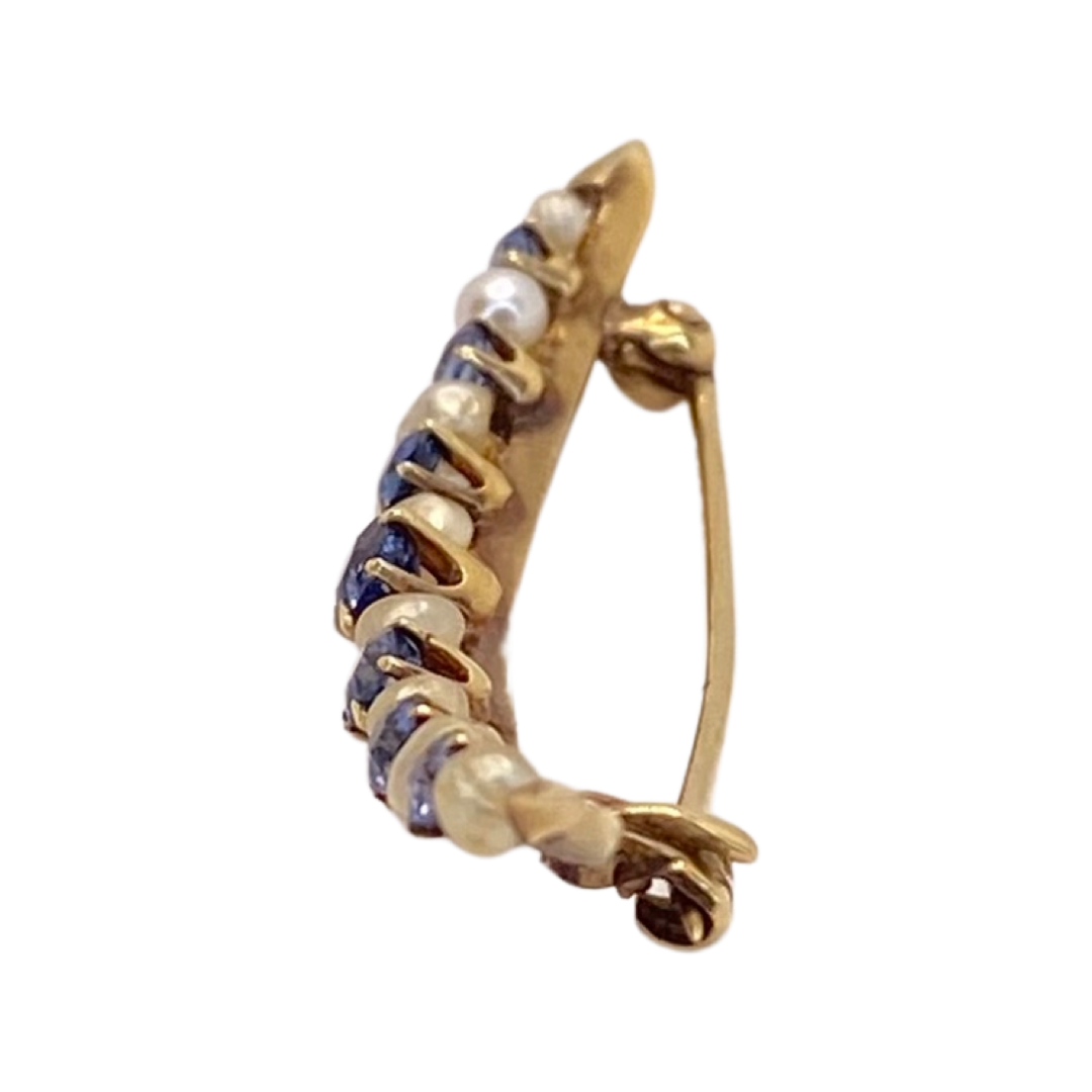 Estate Jewelry 14K Yellow Gold Blue Sapphire & Mother-of-Pearl Brooch