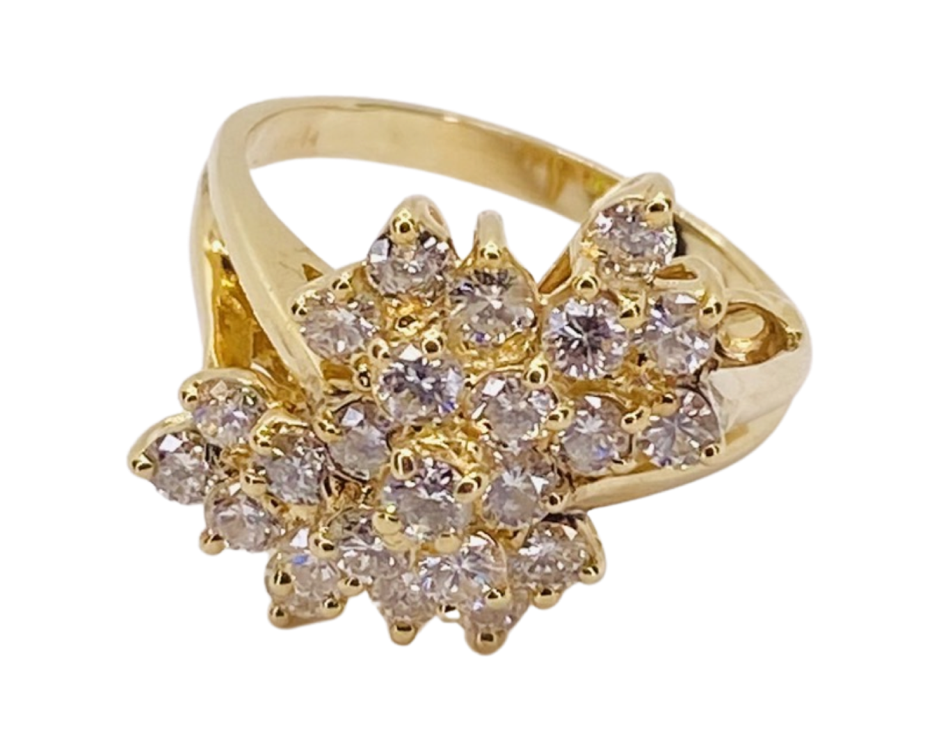 14K Yellow Gold Diamond Cluster Ring