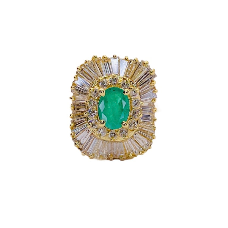 Estate Jewelry 14K Yellow Gold Emerald and Diamond Ring
