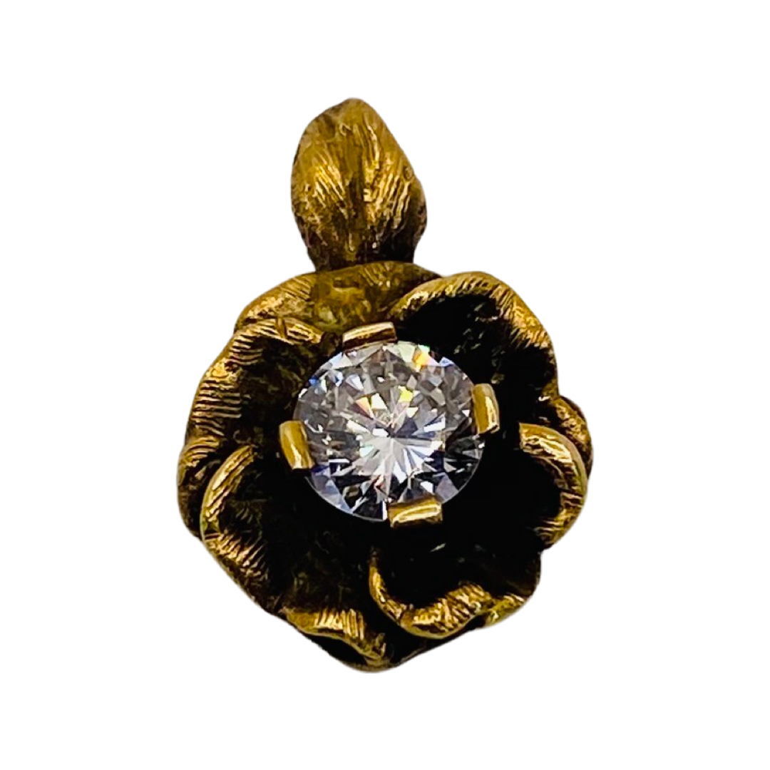 Estate Jewelry 14K Yellow Gold Flower Pendant with Diamond