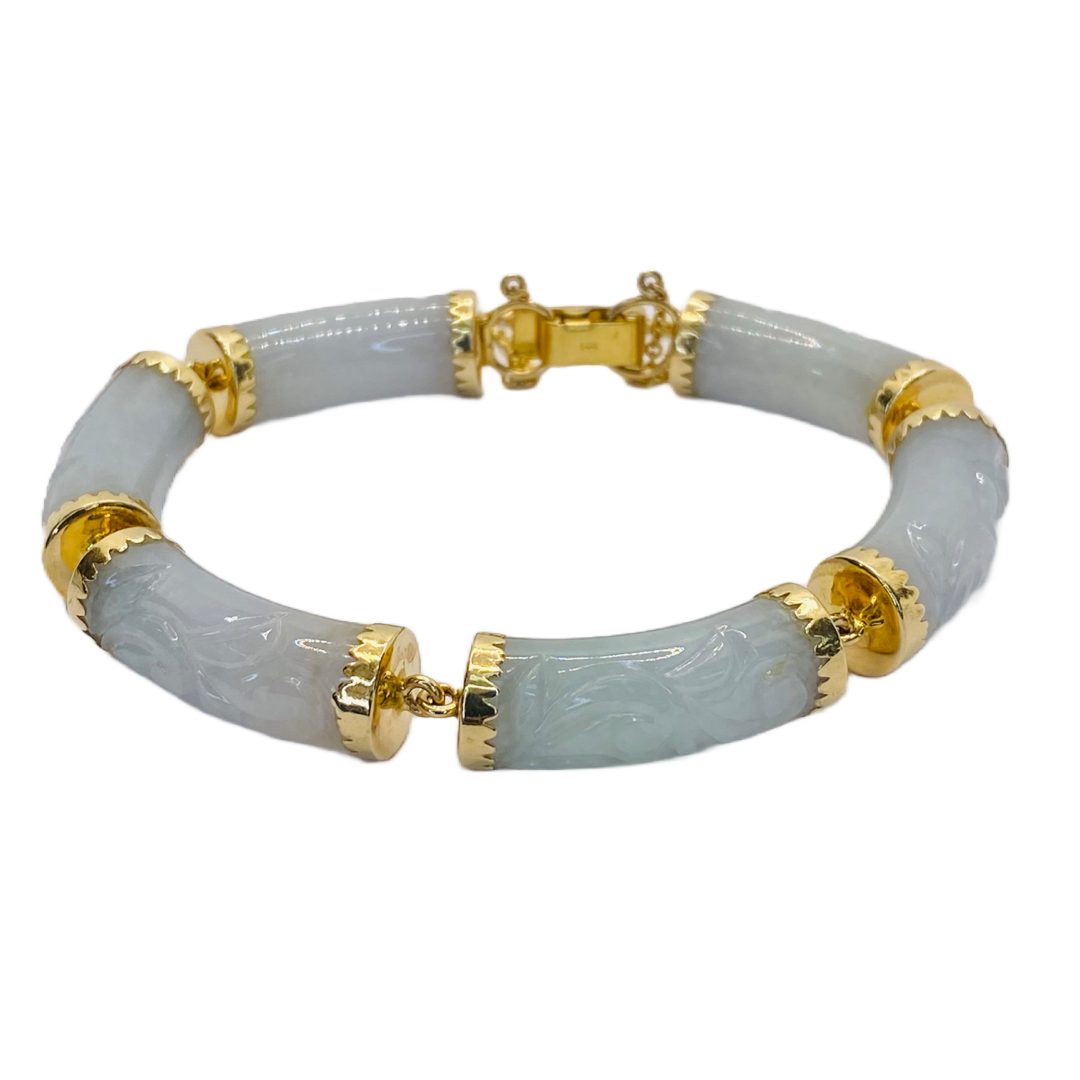Estate Jewelry 14K Yellow Gold Jade Link Bracelet