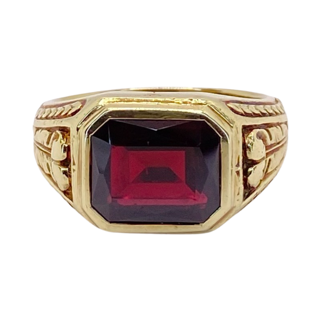 Estate Jewelry 14K Yellow Gold Mens Garnet Ring