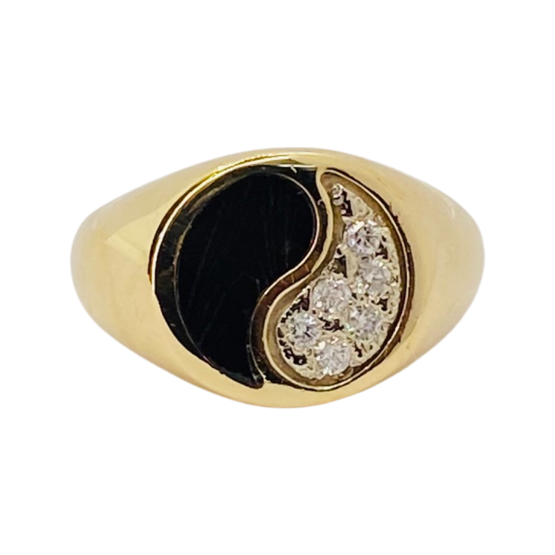 Estate Jewelry 14K Yellow Gold Onyx & Diamond Ying Yang Ring